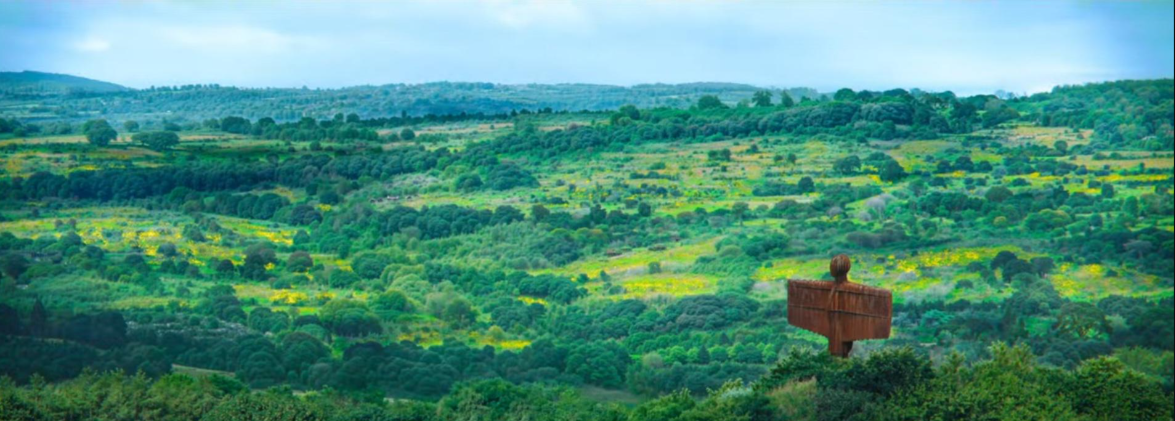 《Angel of the North》是Antony Gormley於1998年於Gateshead創作的巨型地標雕塑,20米高加上比波音757或767客機還要長的54米展翅,堪稱得上為世上最巨型的天使雕塑。它就有如紐約自由女神像或是里約熱內盧救世基督像那樣突出,據說每年有數千萬人在高速公路上經過,成為最多人看過的雕塑之一。《Angel of the North》造價為80萬英鎊,在1998年2月竣工。以耐候鋼為材,所使用的鋼材足以製造16輛英國雙層巴士;單是地面可見部份重達200噸,地底則藏有500噸重的地基。