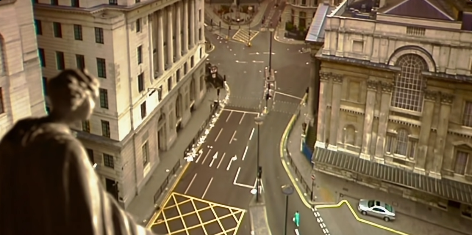 《28日後》片頭男主角獨行在荒廢的倫敦市中心,街道空無一人,畫面極具視覺衝擊力。如今要製作這樣的畫面靠電腦特技就能輕鬆辦到,但是當時劇組卻是在倫敦街頭真實拍攝,工作人員通常在周日清晨開始布置,並在日出後的45分鐘內封街拍攝相關畫面。