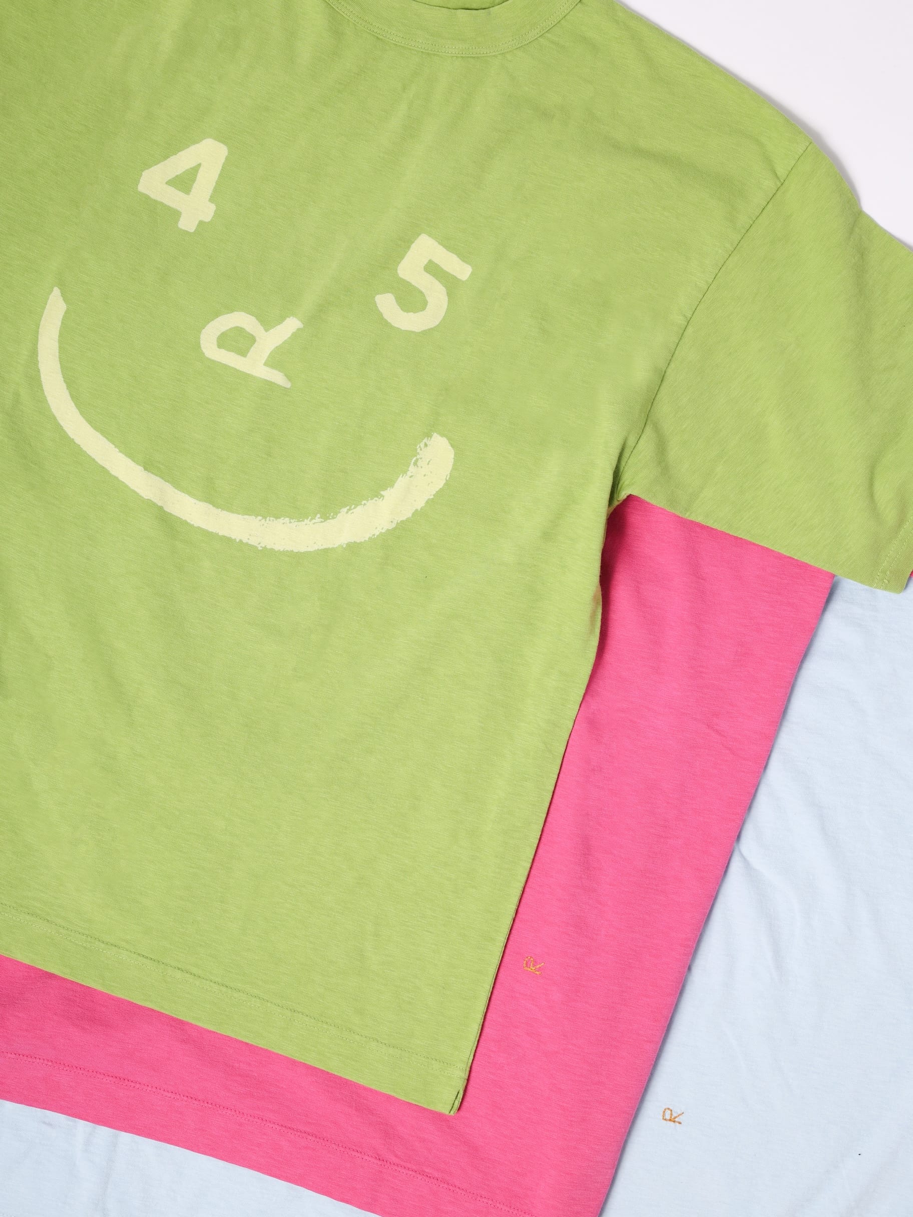 面對炎夏高溫,45R回歸穿搭的根本,為香港獨家設計了限定的夏日Logo Tee系列,特別選用高透氣、質感柔軟的澳洲棉所製,完美對應今年盛夏的濕熱天氣!並變奏出「Smile-R」Tee、45rpm Logo Tee及Big Slit Tee三款設計,共推出15種顏色,以配合每日不同心情,讓穿搭有更多變化。