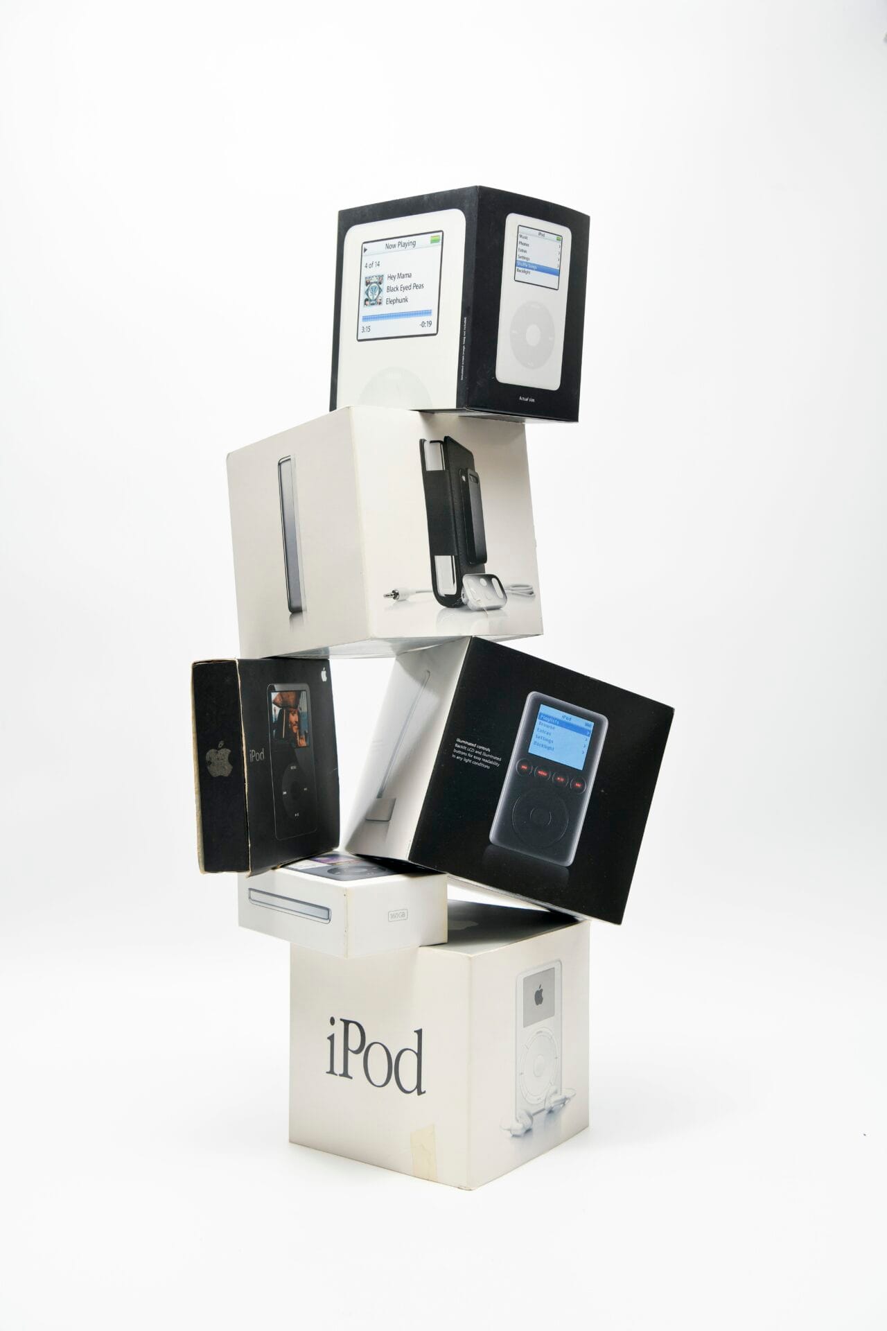 播放器生於數碼音樂盜版猖獗的年代,重視知識產權的STEVE JOBS決定限制只能單向把電腦內的歌曲載入播放器,但無法從播放器提取任何檔案;雖然仍無法阻止用家非法下載的行為,但至少阻止新產品不會淪為複製機器,將盜版音樂轉至其他用家。2001年10月23日,這個被定名「iPod」的播放器終於面世,縱使$399美金的定價遠超於同類產品,亦只支援Macintosh系統,但無阻它成為果迷用家必備的潮流玩意。往後十多年裡,Apple因應不同用家需要和市場策略,相繼開發iPod mini、iPod nano、iPod shuffle、iPod classic及iPod touch等型號,令系列在2007年成為Apple主要的營利來源之一。隨著智能手機及音樂串流平台逐漸取替成為主流的聽歌用具,Apple也逐步讓iPod退下火線,先在2014年9月安排iPod classic悄然下架,iPod nano及iPod shuffle也相繼停產;2022年最後一代iPod touch宣告停產,iPod系列正式完成它的歷史任務。