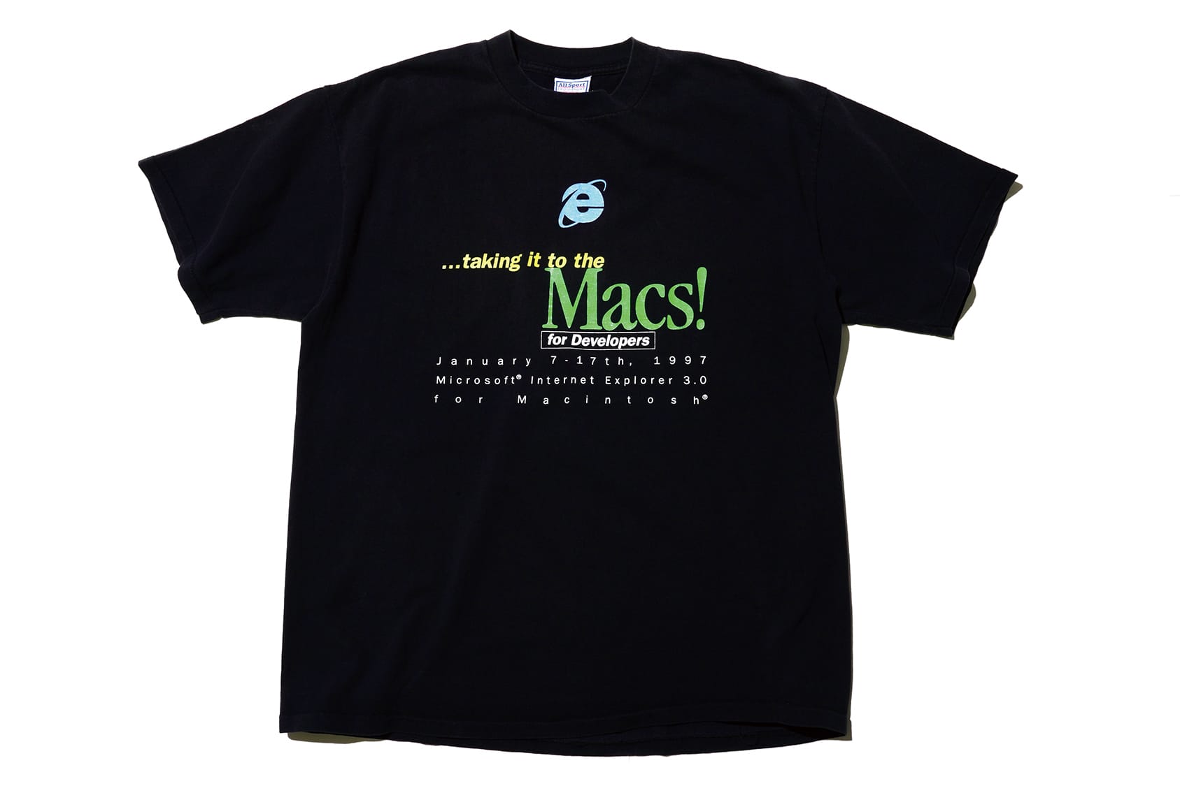 除了古董Mac機外,Apple另一熱門收藏品便是當年充滿創意的Slogan T-Shirt;這些源自八九十年代之古着及Deadstock品,都以推廣產品及活動為主,創作出來的Slogan不乏十分有型的神來之筆,精彩標語如「We cut no CD before it's time⋯⋯ 」比比皆是。當年這批Apple T-Shirt,Body都是採用美國廠牌出品,Jerzees、Hanes、Fruit Of The Loom、Oneita、Anvil、Stedman、Belton⋯⋯也曾是Apple之合作伙伴,除了蘋果之名聲吸引外,T-Shirt本身Made In USA之美國精神亦是一大賣點,難怪這批產物在拍賣網依然有價有市。