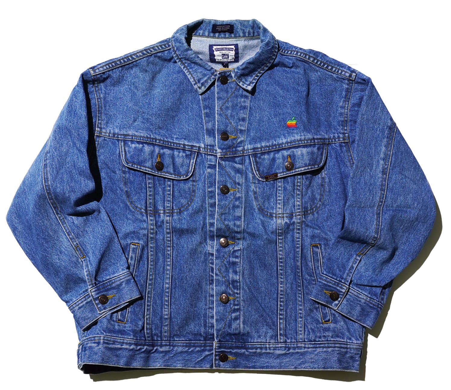 而在九十年代,Apple亦進行了另一重要Collaboration活動,便是與美國Denim名廠LEE展開合作,出品了紅色Apple Logo之厚身白色衛衣,中古美品完好地保存至今,有一定難度;而繡有「Rainbow Apple」 Logo之LEE牛仔褸,更是充滿美國精神的聯名單品,充滿著九十年代的美好回憶。