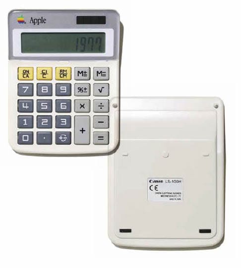 而擅長製造精密電腦的Apple Computer,在九十年代出品計數機時,也竟然要借助另一廠牌技術,將Canon的LS-100H變成Apple Calculator,也實在是有趣的Collaboration。