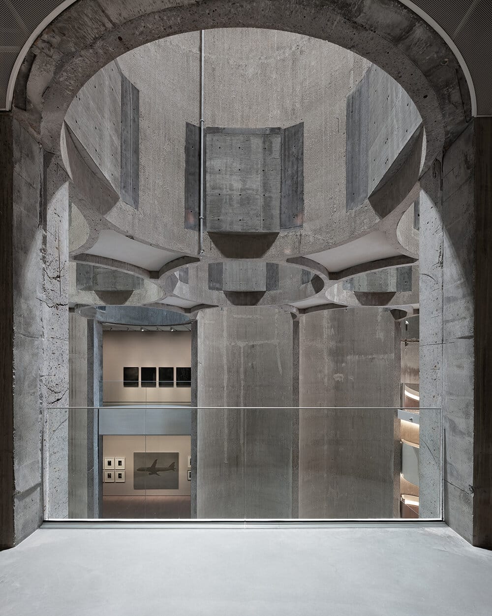 天花露出的圓形結構如雕塑般震撼,讓遊人恍如走進神聖的大教堂。混凝土結構在灑落的自然光之下,輕聲道出過去一段輝煌的工業歷史。