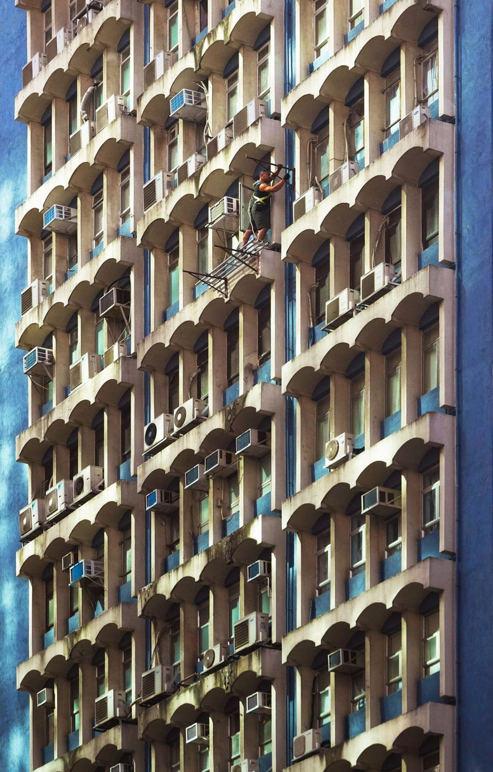 法籍攝影師Romain Jacquet-Lagrèze自2009年移居來港,便開始拿起相機記錄自己的城市觀察。他拍石屎大廈縫隙間生出的花草植物,拍獅子山的「三十六景」,也拍舊招牌的中文字,持續拍攝不同題材。過去兩年間,Romain Jacquet-Lagrèze拍在半空中的飛鳥及搭竹棚的「蜘蛛俠」,並輯錄成新作《Echoing Above》。