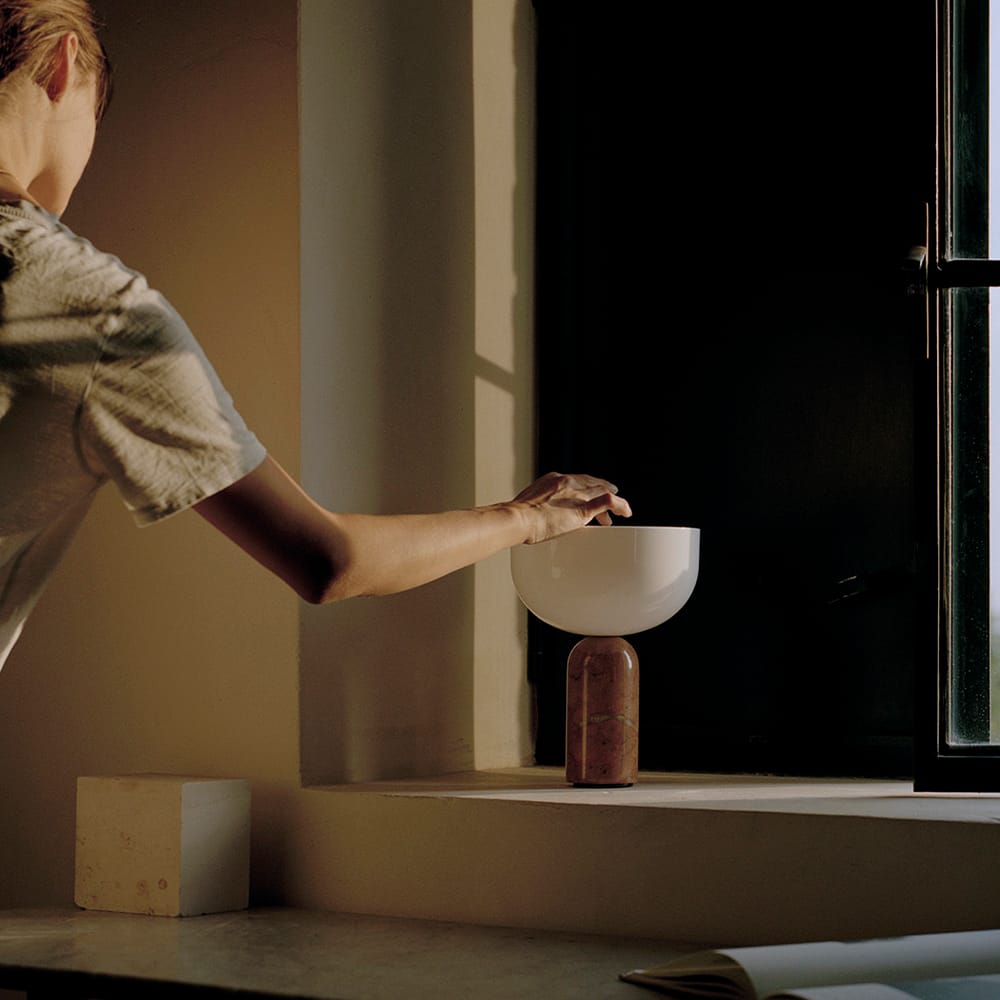 挪威設計師Lars Tornøe大膽地將半圓的燈罩輕巧地接放在大理石的基座上,展現出一種剛剛好的平衡狀態,以簡單幾何展現出靜謐的氛圍,高手。只要輕按燈頂的圓圈,便可調配3款明暗的光度。設計備有5款石材選擇,即使單單放在桌上,就如同一件藝術雕塑般可點綴空間。