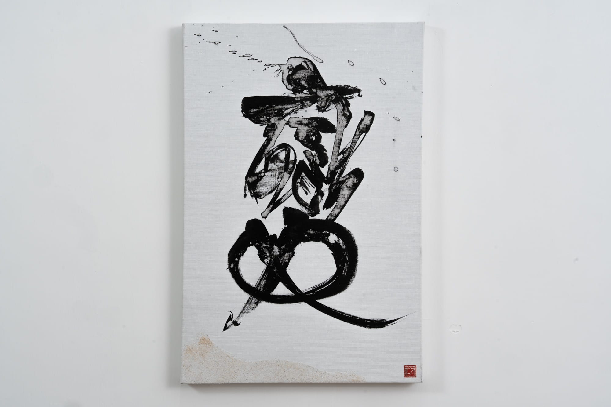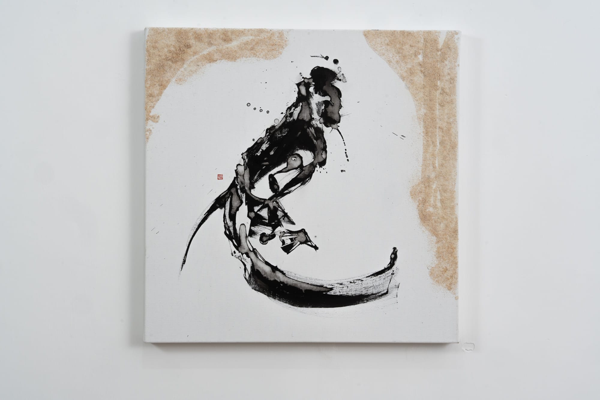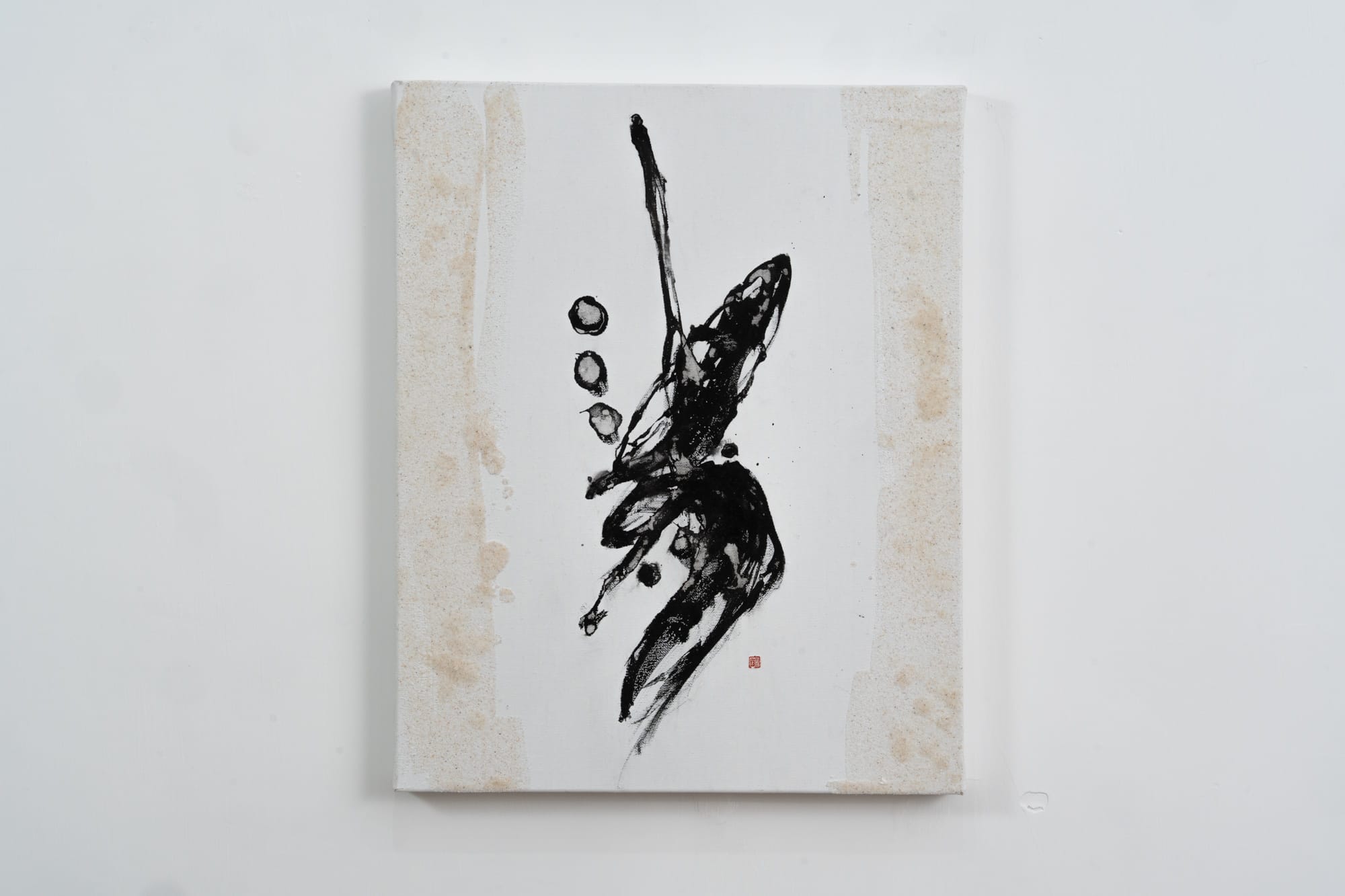 展覽中看到的「悟」、「變」、「清」等作品,是陳靄凝讀過《小小的覺悟》後深有體會的詞彙。「有些觀眾認為『緣』字像一隻貓、『息』字如一條魚,只要用聯想力『無心』享受筆墨的樂趣就可。」若細心留意,字上更刻意用上幼沙以呼應枡野俊明的另一個重要身份——日本庭園設計師。陳靄凝以輕柔的點綴,演繹出「枯山水」的禪意美學。