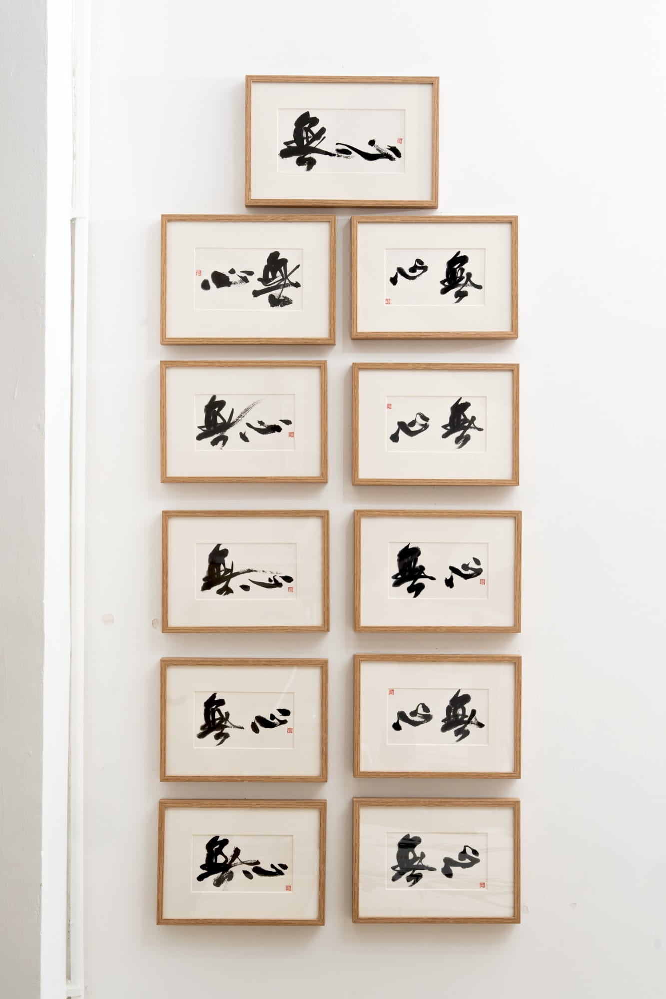 「無心」二字在陳靄凝的個展中出現了12次之多,「無心即一個沒有分別之心,只是專注做好當下應該要做的事。」陳靄凝在放鬆的狀態下一口氣寫下11款「無心」拼湊出來的效果,最後選擇以一柔一實的配搭、用上3公斤毛筆寫出最大幅的「無心」。每次寫字也是一種修煉,「無論寫甚麼內容,我所追求的也是平衡。」