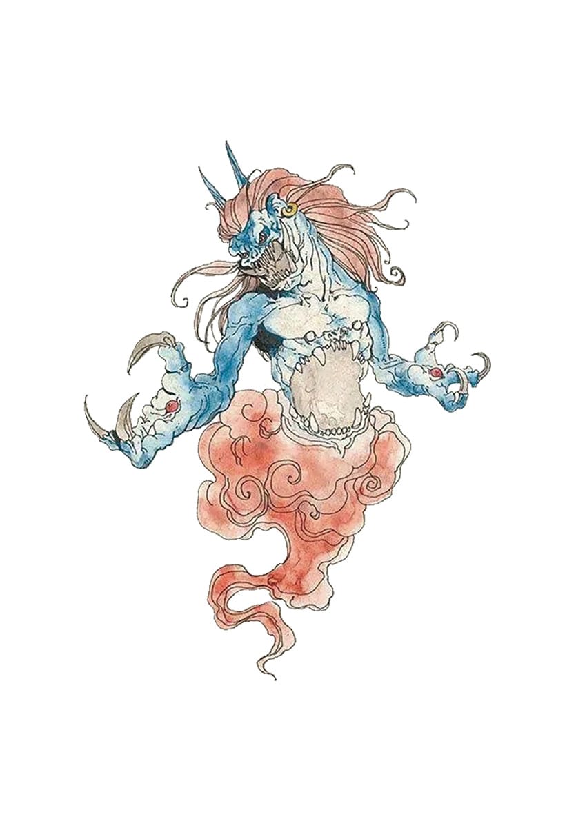 與音樂無關。雷鬼頭頂長角,面貌如猴似豬,擁有雙翼,能於空中飛翔,亦能引導雷電害人。