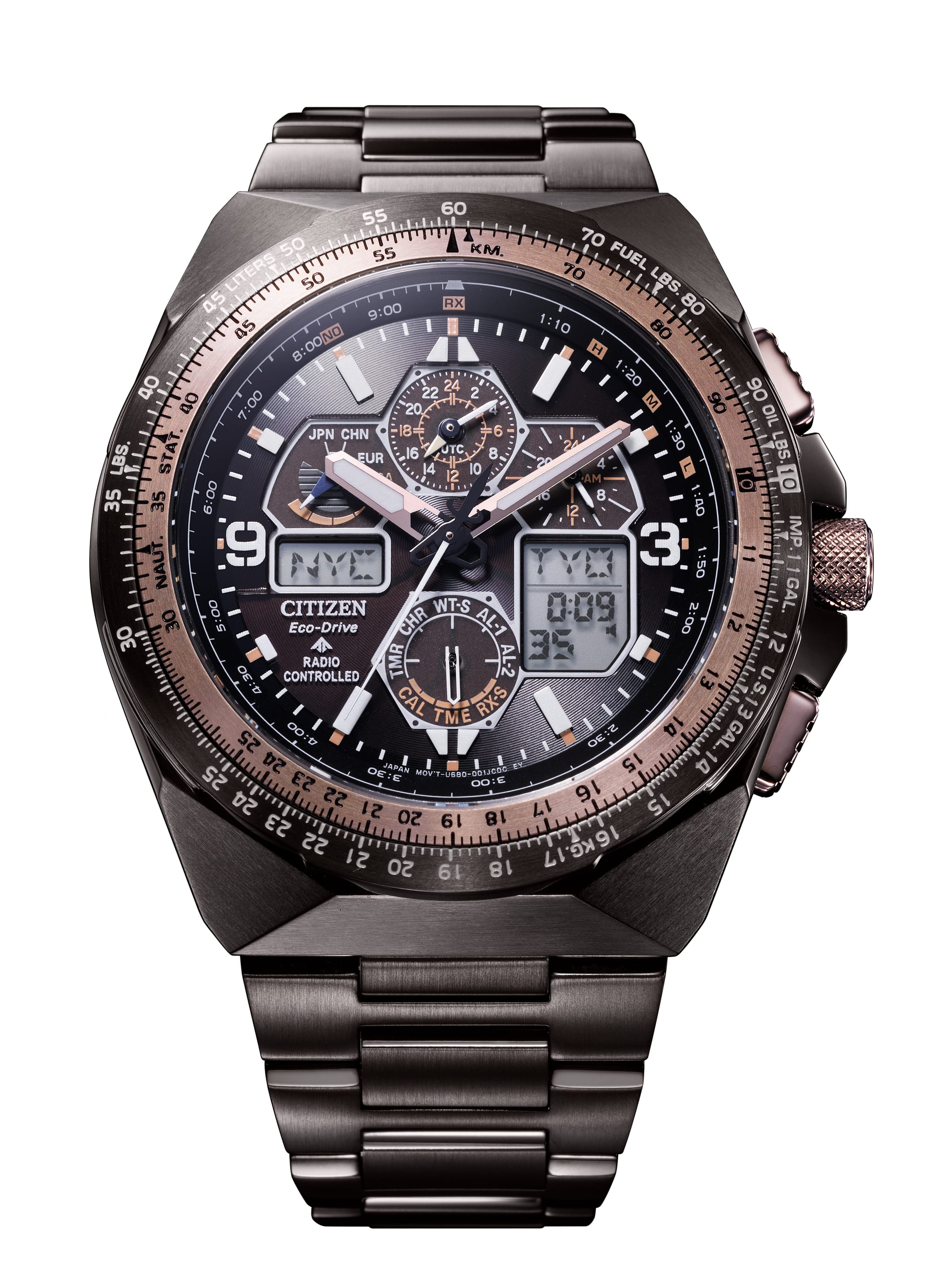 這款SKY限量款時計用上光動能電波機芯Cal.U680,可接收多個電波塔發出的時間訊號,定期校對時間及日期,帶來最準確時間。腕錶配備世界時間、兩地時間等功能,方便用家遊走世界各地。同時手錶還為飛行愛好者設計專用的飛行滑尺。