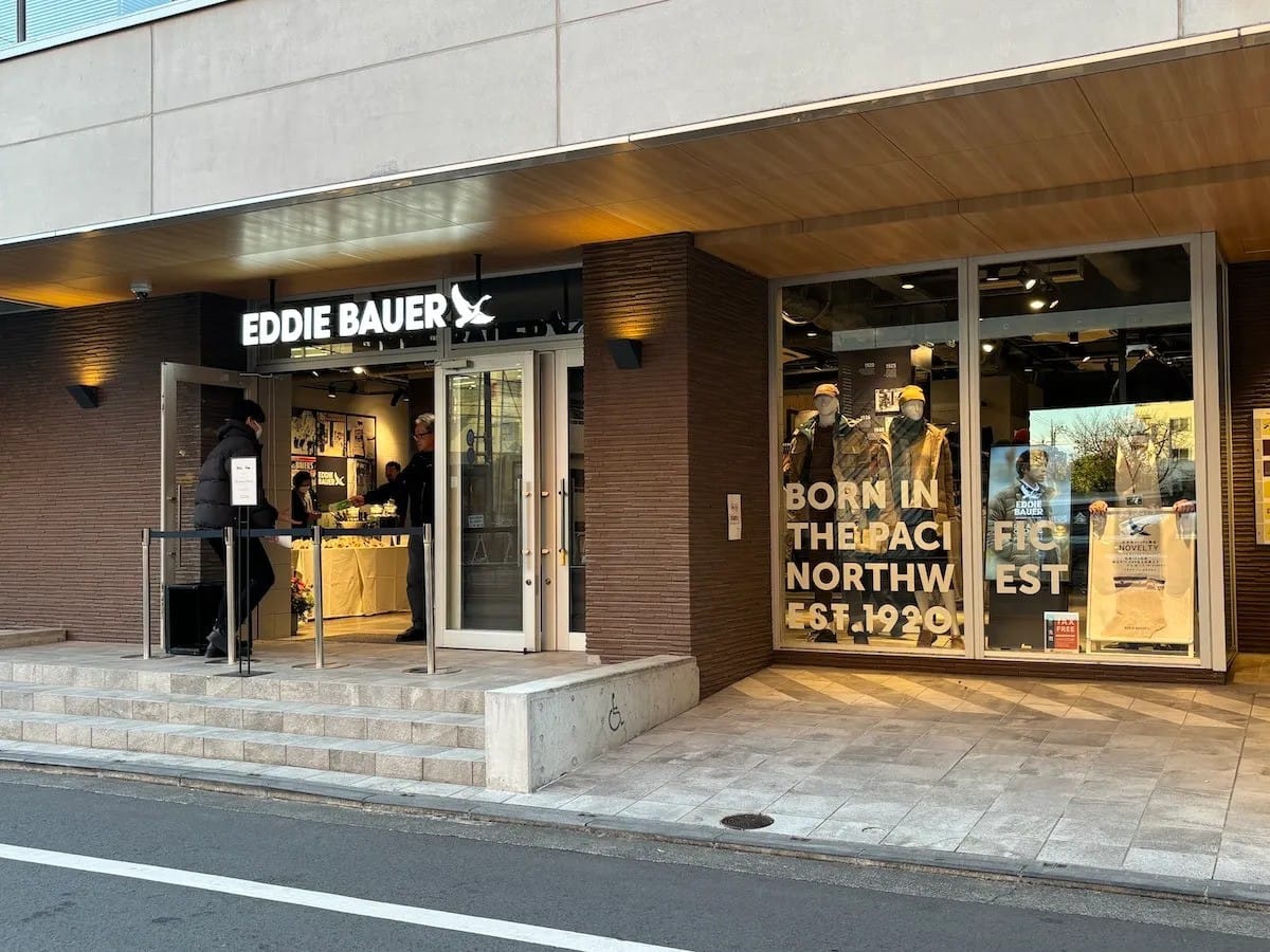 Eddie Bauer早於1994年已經以聯營方式在日本開店。奈何種種經營不善因素,2021年品牌決定關閉所有實體店。直至2024年年末,品牌再由株式會社水甚(羽絨品牌First Down USA的日本代理)與伊藤忠商事接掌。水甚不只在東京吉祥寺重開Eddie Bauer的旗艦店;近來亦不斷有新企劃,務求令大家重新認識這個「Eddie Bauer JP」。