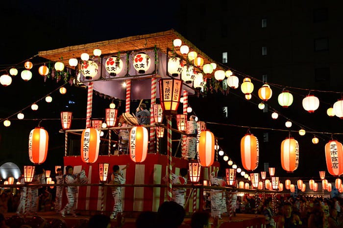 盂蘭盆節源於佛教儀式,盂蘭盆節中的盂蘭是來自於梵語,意思為倒懸,而「盆」為裝盛食物的器皿。對於日本人而言,盂蘭盆節是一年一度迎接祖先們的靈魂回家,並且供奉他們以示感謝的日子。過往的盂蘭盆節主要於農曆7月13至16日舉行,而明治維新時期轉用新曆後則改為新曆8月13至16日舉行。