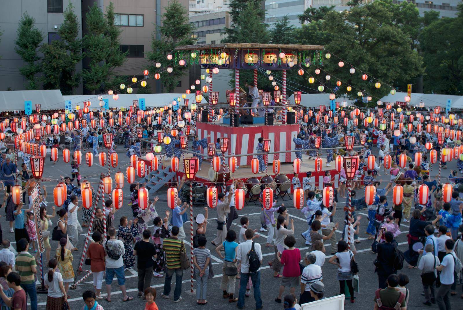 除此之外,日本人在盂蘭盆節時更會聚在一起祭祀和跳舞。盆舞(お盆踊り)原本是盂蘭盆節舉辦法事中的一個組成部份,盆舞被認為有三大意義,第一為迎接故人回來,第二則是有鎮魂作用,最後則是透過跳舞趕走不好的惡靈。除了傳統的儀式意義外,時至今日更多了一種節慶意義。隨著環境的轉變,在現代日本社會裡,舞蹈活動大多由居住地的企業和商店街組織籌辦,變成一個大型的舞蹈聚會。