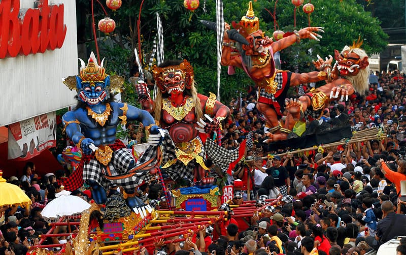 印尼的「趕鬼節」定於三月的最後一天,印尼人相信這一天是魔鬼出來人間抓人的可怕日子,因此當地居民會製作名為「OGOH-OGOH」(意思是巨大怪物)的祭品放在村子裡,希望讓其他魔鬼以為已經有惡魔在這個村莊抓人了,而且所有的村民在趕鬼節當天都會躲在家中不出門,直到隔天再舉行盛大慶典將「OGOH-OGOH」燒毀。