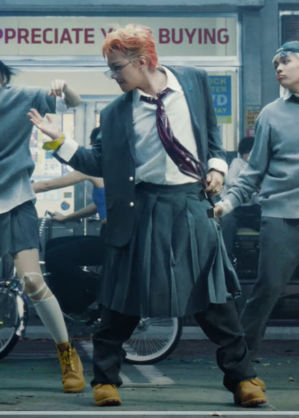 同樣地在〈TOO BAD〉MV當中,G-Dragon的西裝、裙、褲再搭配Timberland Yellow Boots的組合的確令人眼前一亮,而造型當中他亦佩戴了另一常用鏡架款式-MYKITA的EERO。秉承德國設計的實用理念,MYKITA在人體工學結構中巧妙運用極簡線條勾勒出Aviator飛行員鏡架的雙鏡橋輪廓,並成功做到極輕盈的特色,與G-Dragon的中性打扮組合起來,一樣毫無違和。