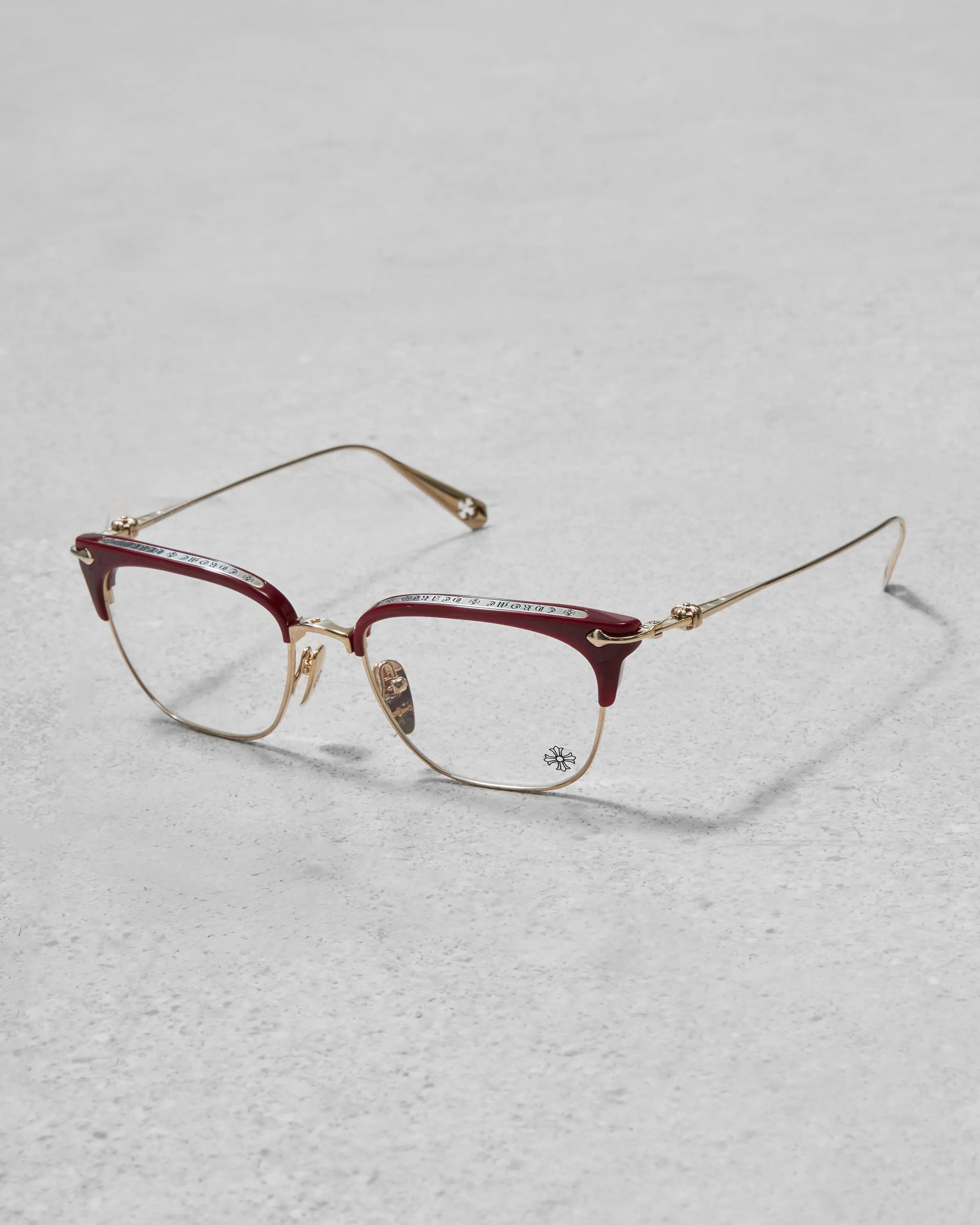 G-Dragon出名是「人肉衣架」之外,他那精緻的臉孔,似乎亦能輕鬆駕馭不同眼鏡框型。較早前在東京舉辦「Übermensch World Tour」期間,他就戴上了Chrome Hearts的Sluntradiction現身機場以及東京巨蛋場館。傳統「眉架」(Browline Glasses)款式,鏡臂部份綴以招牌「CH PLUS」十字花銀飾之餘,眉框上緣又鑲崁上品牌字樣配件,復古之中不乏華麗的格調。