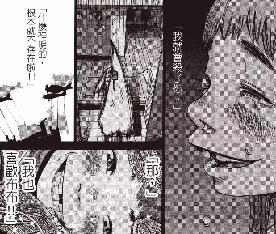 漫畫家淺野一二〇的《DEDEDEDE 惡魔的破壞》最近搬上大銀幕,不過說到更深刻作品是《晚安布布》。主角布布在小學遇上家庭破裂,同時間被插班生愛子所吸引,卻被告訴要私奔,否則奪去他的性命。布布被愛慾、家人、信仰的旋渦拉扯,在成長的不安及痛苦中描繪自己;簡潔而短促的名字,卻是抑鬱的極致。