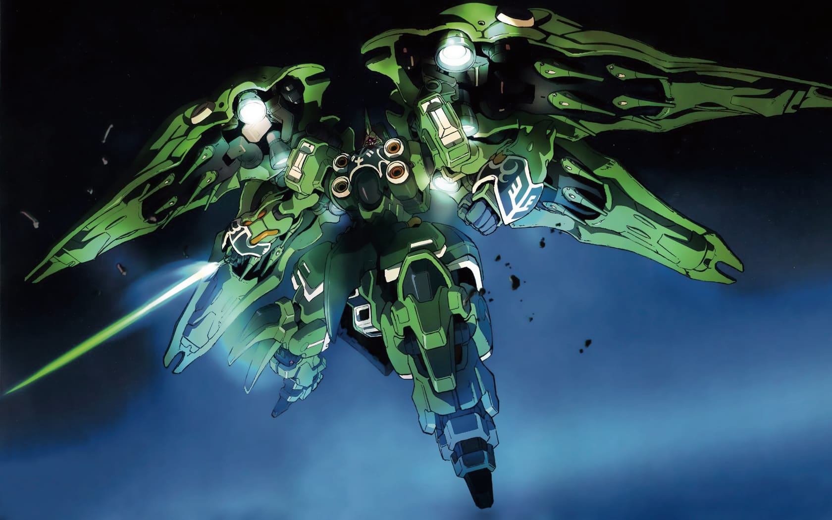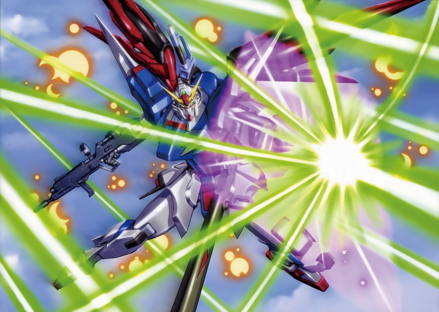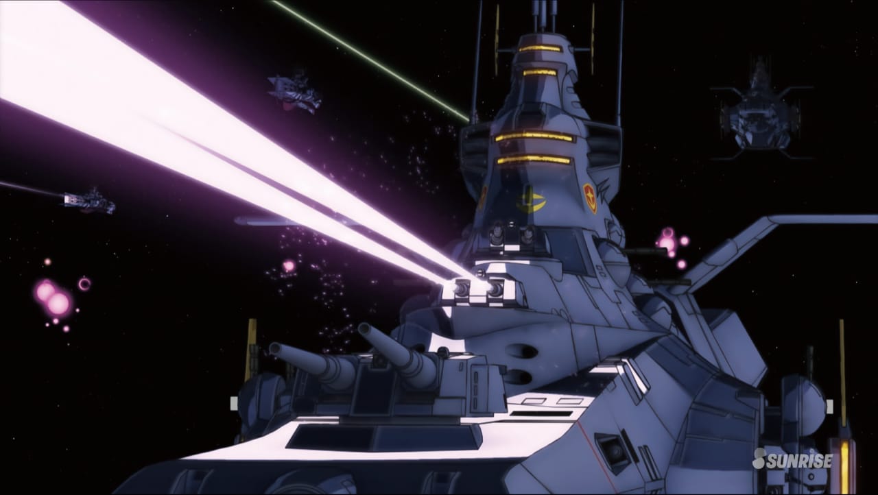 作為歷史悠久的光束武器,MEGA粒子砲不但提供極具破壞力的攻擊效果,同時亦被廣泛用於一眾戰艦、MS甚至MA(MOBILE ARMOUR)機體之上。有關MEGA粒子砲的運作,當然亦離不開米諾夫斯基粒子,後者可區分為正電荷與負電荷兩種粒子,若將粒子加以施壓,兩者會形成呈中性電力的「MEGA粒子」,而在轉換過程中所產生的能量更會被儲存起來;當聚集了一定的MEGA粒子時,亦隨即成為彈藥,但為了不讓粒子向外擴散,必須透過利用I力場來塑造砲口,即是MEGA粒子唯一的擴散出口。比起傳統彈藥火砲,MEGA粒子砲所產生的能源流失更低,所發揮的攻擊效能遠高於前者,但若要將米諾夫斯基粒子壓縮成MEGA粒子,則需消耗相當大的能源,故MEGA粒子砲在初時僅會配置於戰艦、巡洋艦等大型機器;直到E-CAP(ENERGY CAPACITOR)能源儲備技術的出現,可將即將被壓縮的米諾夫斯基粒子預先儲存,進一步減低生產MEGA粒子所需的能源,藉此讓MS、MA等機體亦能配備MEGA粒子砲,而這類型可攜式MEGA粒子砲亦被稱為光束來福槍。