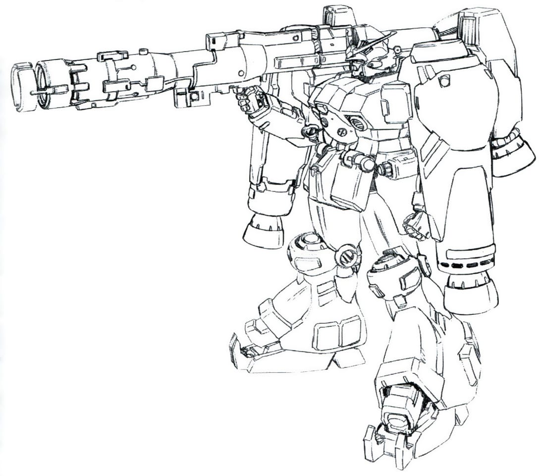 光束武器尚未面世之時,MS除了使用機槍等常規武器,同時亦會設有可發射大型炮彈的火箭砲,而MS所採用的火箭砲種類繁多,有如於「一年戰爭」中出現的高性能火箭砲、核彈火箭砲、黏著榴彈火箭砲等等。