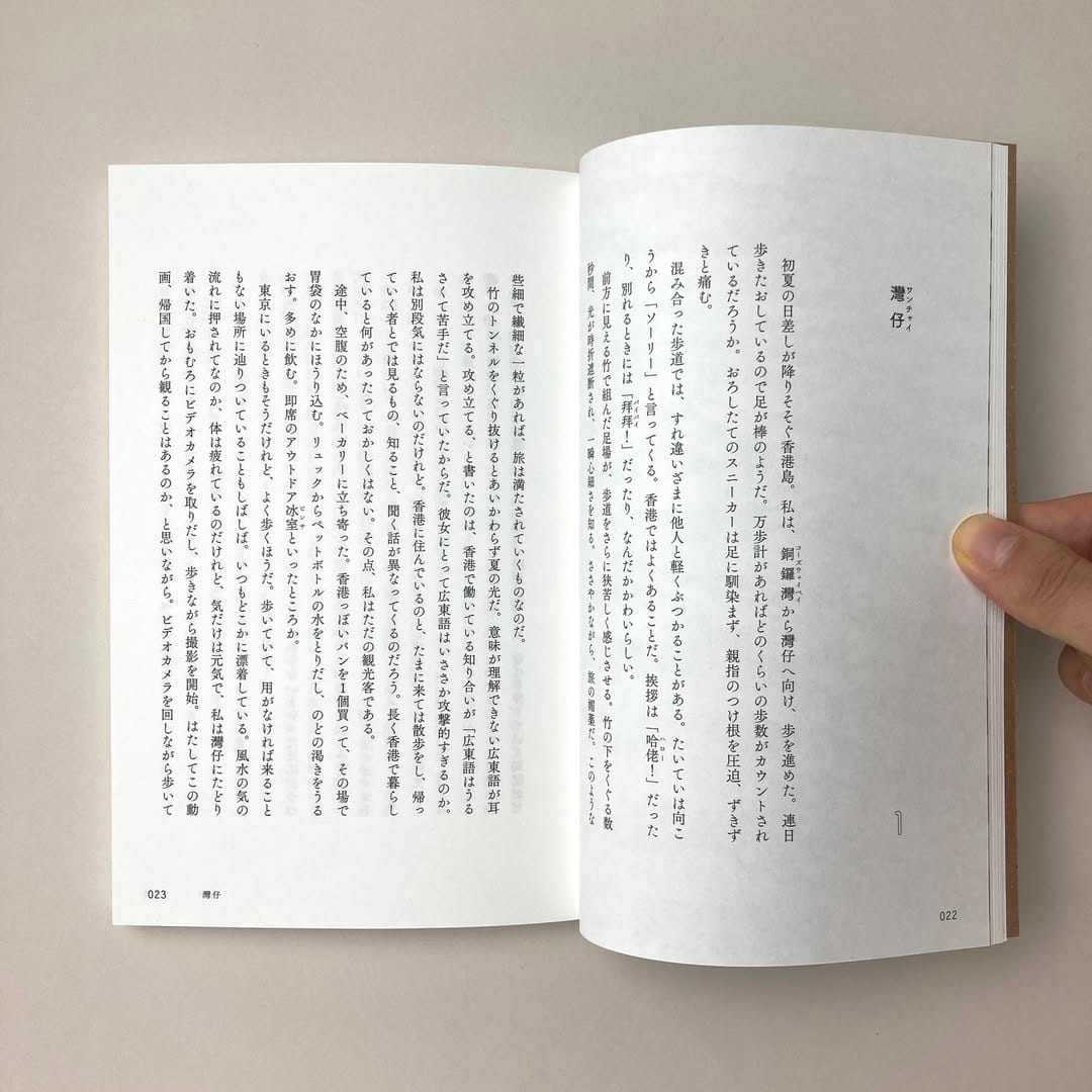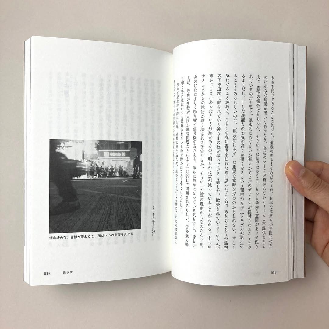這位日本大叔並非單純的觀光遊客,他是東京獨立出版社「Right, there is nothing.」創辦人之一兼藝術雙人組合sesamespace的成員。他在2013年初次訪港,書中以碎碎唸的散文形式記錄了他自2013至2024年間在香港的所見所聞,而並非那種打卡遊遊景點推介。除了銅鑼灣、尖沙咀這些觀光地,他還走訪了錦上路、天水圍、柴灣等,從港九新界走到大嶼山。就如我們到訪日本一樣,他也行得多,疫情開關後再度來港的第一天便行了4萬步。