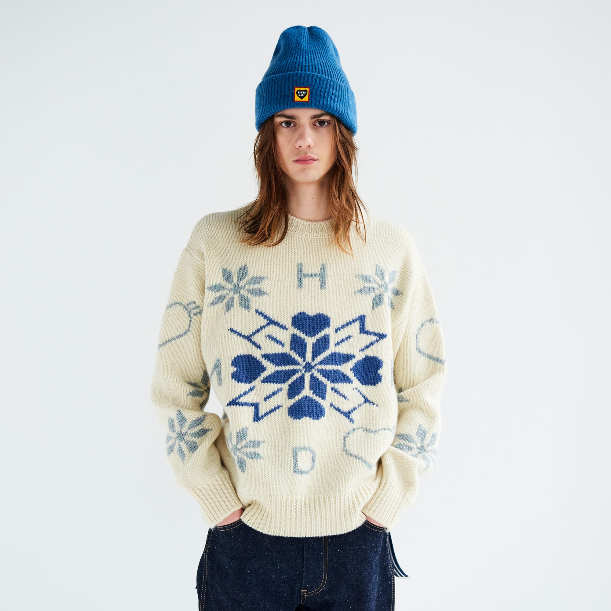 Snowflake Knit Sweater,永遠長青的雪花毛衣。美式復古風滿載,品牌Logo舆雪花圖案巧妙融合,今回HUMAN MADE將經典衣類時尚化、而又不失傳統細節之作。灰/白二色展開,即日上架。