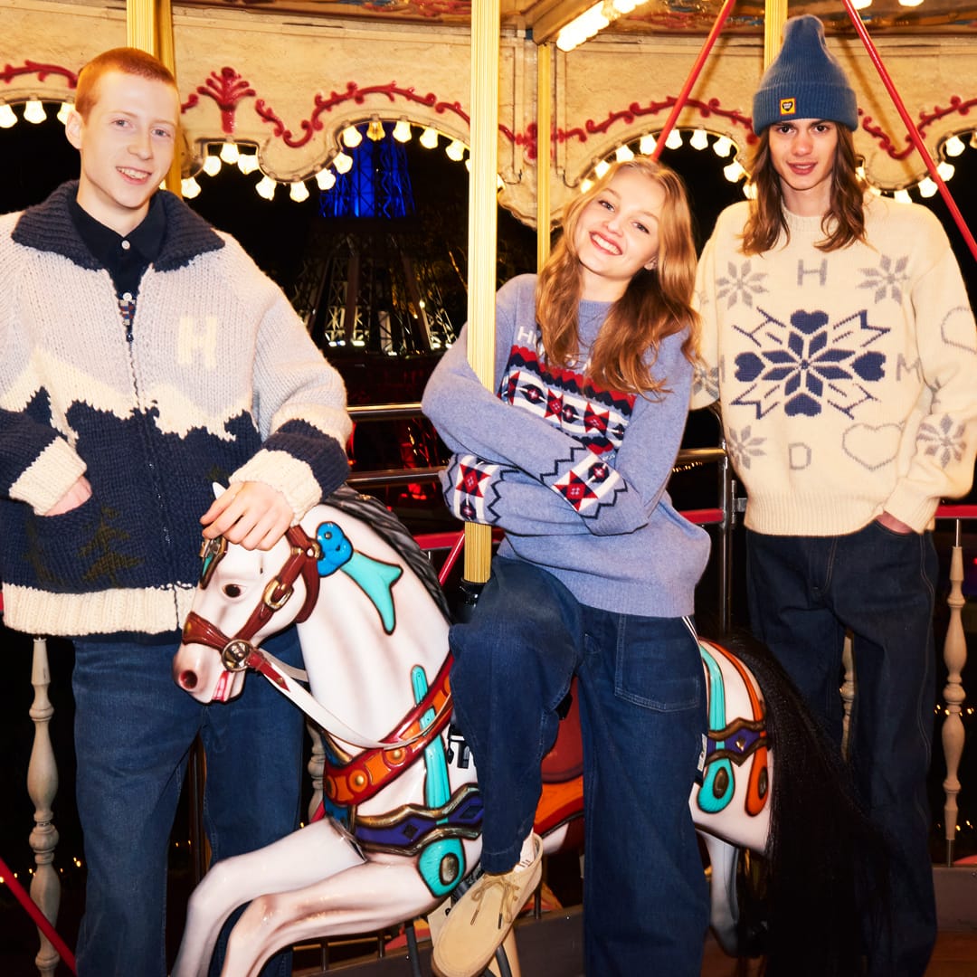 HUMAN MADE今季釋出多樣Jacquard技術作品,緹花織之北歐冷帽與襪子,以特別的冬日圖案演繹。自己襯衫固然一流,用來送禮亦是上選。