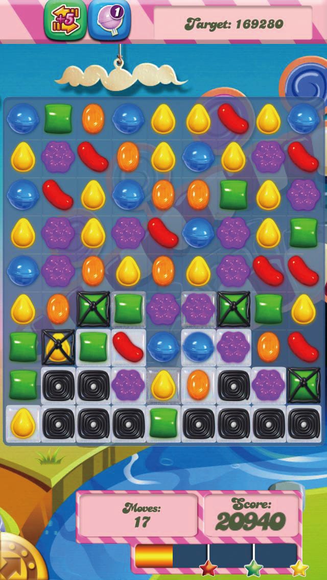 曾於App Store上架的益智方塊遊戲固然多不勝數,然而2012年面世的《Candy Crush Saga》,就憑色彩繽紛、造型甜美的糖果方塊設計成功突圍而出,僅在遊戲推出五年後隨即創出下載量高達二十七億次的驚人佳績,成為App Store其一最具代表性的方塊遊戲。《Candy Crush Saga》由馬爾他遊戲公司King所開發,玩家需透過交換方塊位置,將三塊或以上相同的方塊配對並將其消除,尤其《Candy Crush Saga》設有多個關卡並以免費形式上架,故此成功吸引大批iPhone用家下載遊玩。