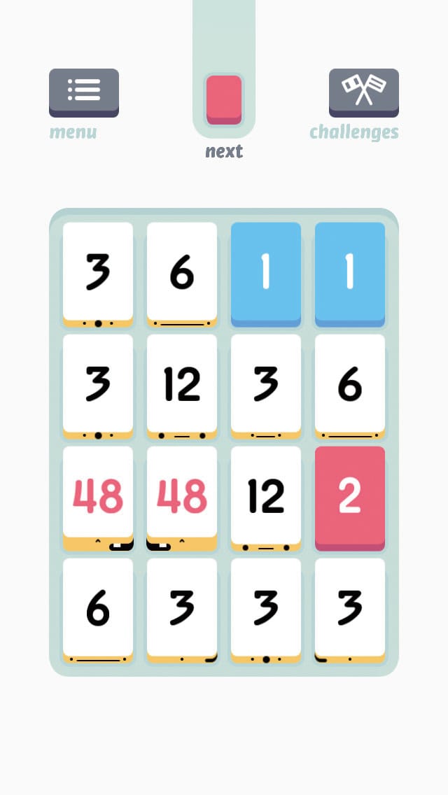 上述《Flappy Bird》於2014年初人氣大爆發,遊玩熱潮直捲世界各地,然而同期拼圖運算遊戲《Threes》亦正式面世,更以破格的遊玩方式成功吸引大眾關注。一如其名《Threes》是一款以「3」倍數作主軸的計算遊戲,玩家需要於一幅四乘四的版圖中移動版塊,如將「1」、「2」兩塊版塊結合,藉此消除不斷衍生的版塊並取得更高分數;值得一提《Threes》當年更被Apple列入年度最佳iPhone遊戲之一,盡見認受性定屬App Store其一經典作品。