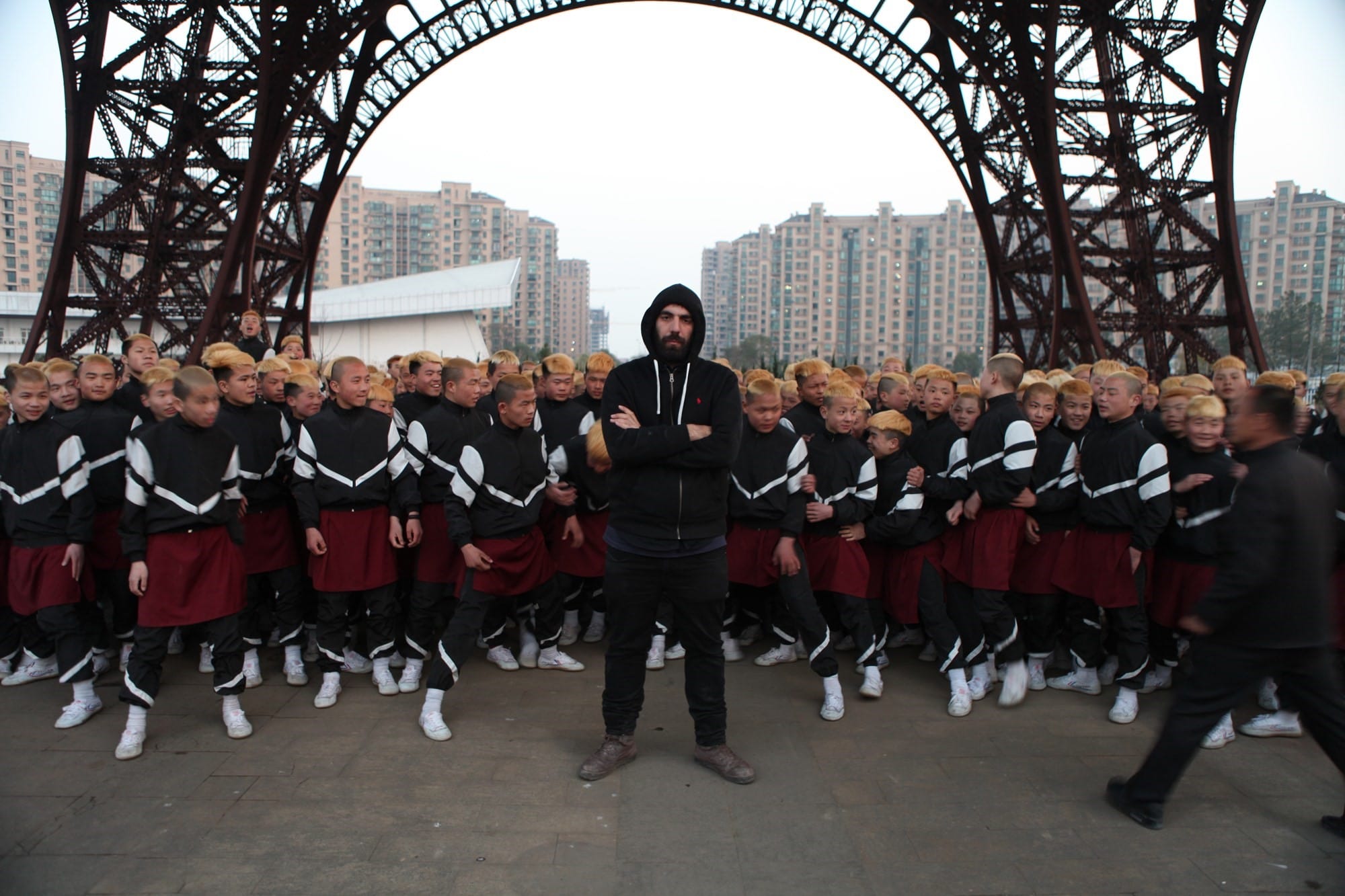 拍攝之前,導演希望為300多名少林寺學生染上金髮。少林寺負責人本來拒絕該要求,幸最後願意讓步,但向導演開出條件:拍攝時間以一日為限,拍攝完畢需即日為學生們將頭色復原。於是導演帶了40名髮型師到場侍候,而在染髮期間,在場工作人員發現孩子們當中有很多來自窮等人家,但亦不乏富家子弟,就像一大班參加學校旅行的學生,場面非常有趣。