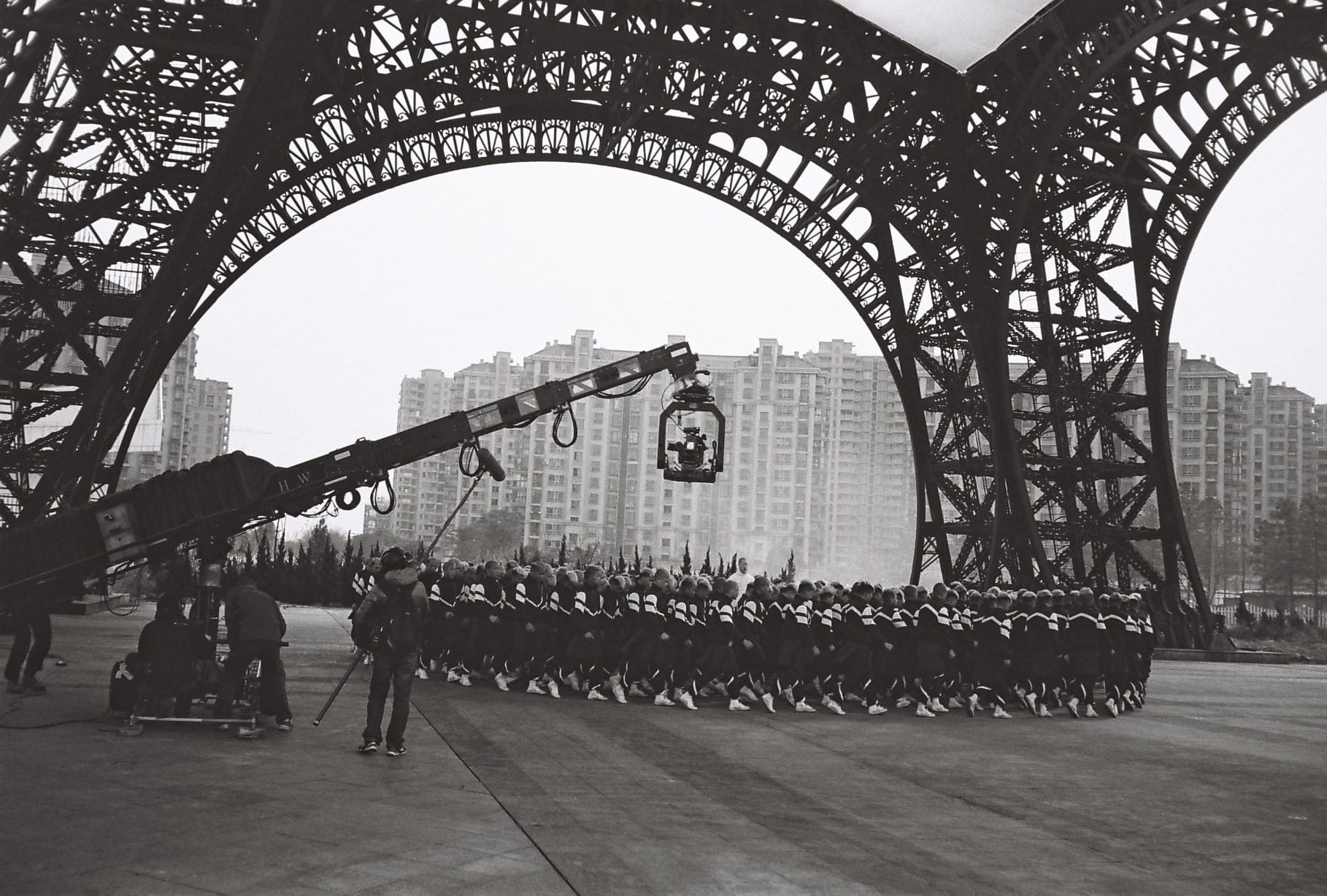 說回〈Gosh〉MV,因為當年進行拍攝的時候,「天都城」形同死城,設施及配套非常貧乏,許多預算有限的新婚夫婦,都會選擇到這裡來拍攝婚照,導演正正看中這點,嘗試放棄採用CG或3D等後製效果,聘請了300多名染了金髮的少林寺學生 (!),在這片「無人」區域呈現大規模而同步的人物活動。