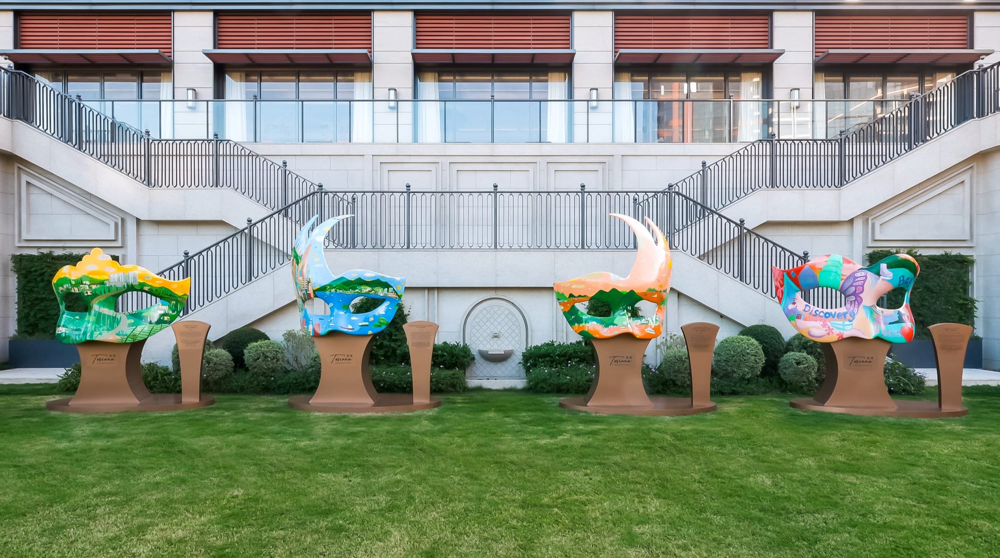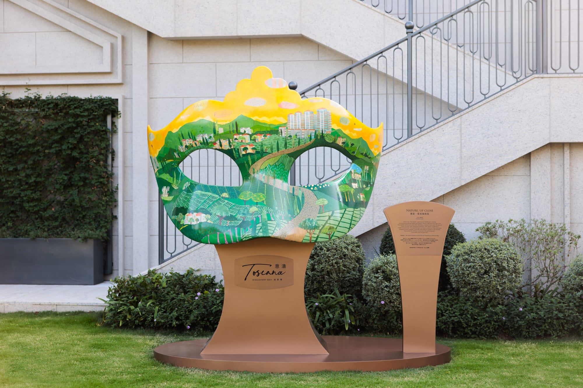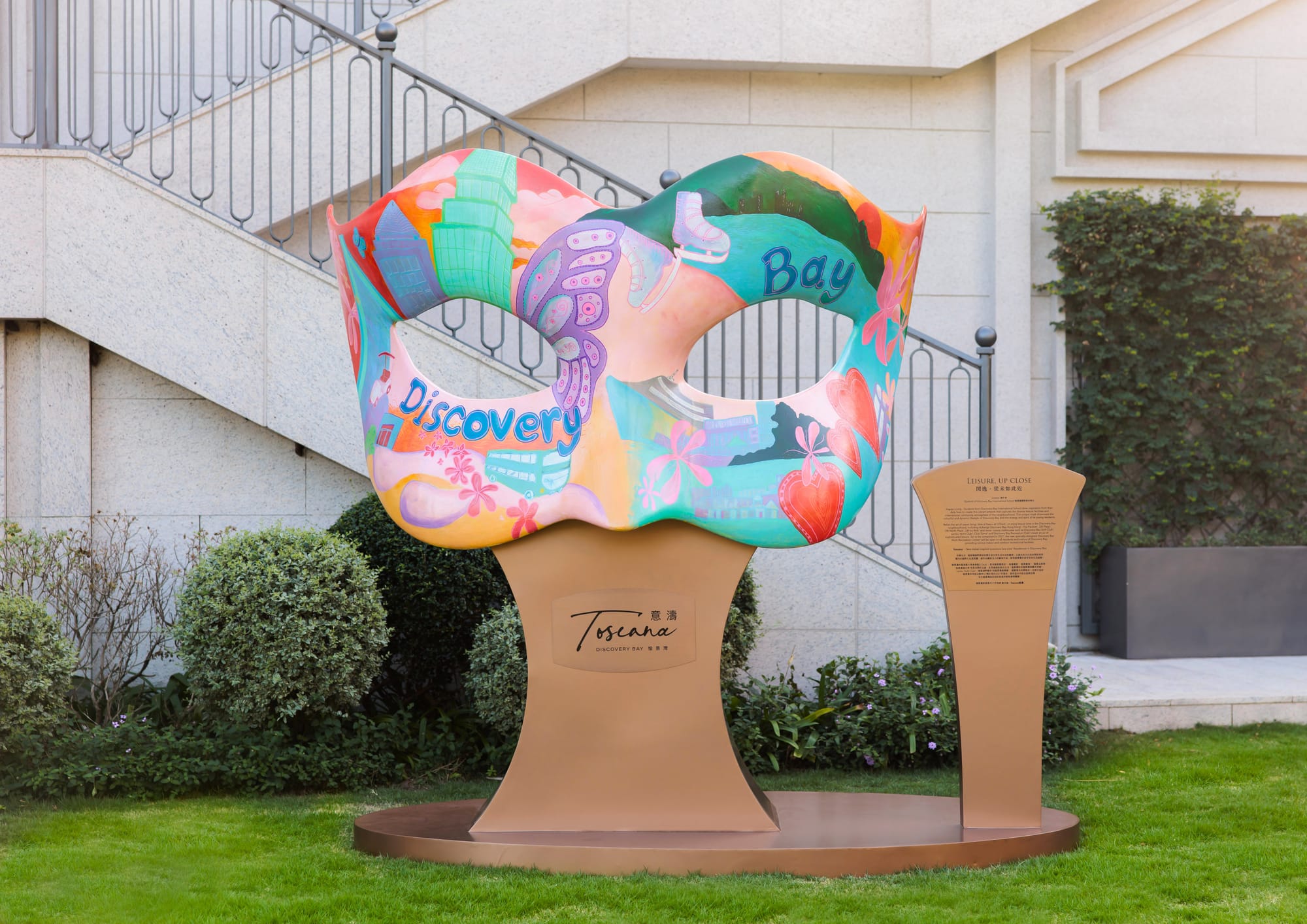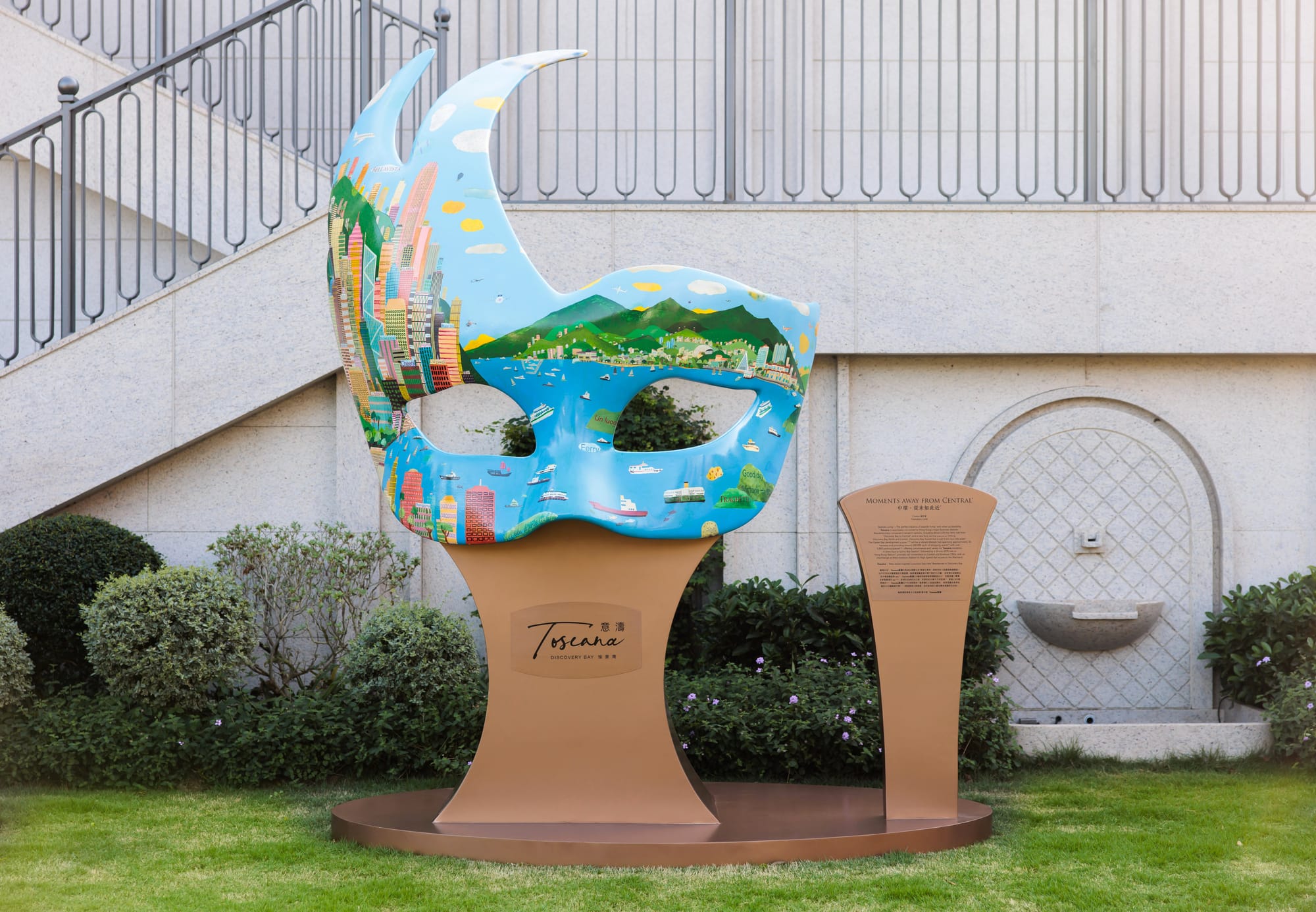 4個巨大化面具於「愉景灣藝術展覽︰從未如此近」展出,演繹意式風尚。透過藝術品,不論是區內或區外的人,都會感受到愉景灣的自然優勢與多元的社區氛圍。