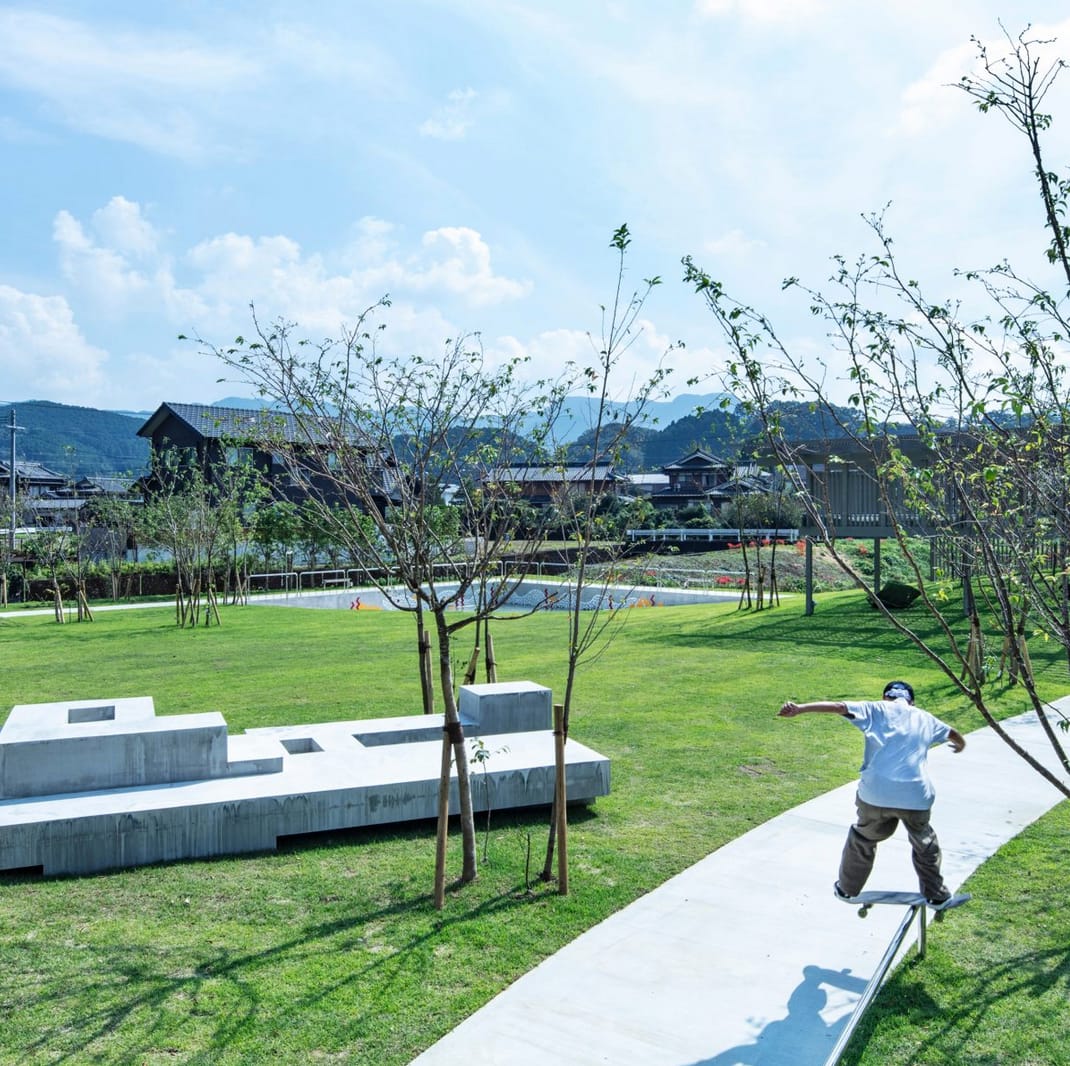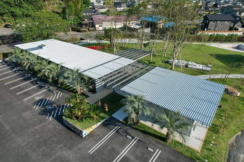 由波佐見町陶藝館步行約10分鐘,店舖周邊給民居和農田所包圍。起初誤以為迷路,只好跟著隱約的Hip-Hop音樂而行。走入公園見到有現場DJ打碟,即聞歌起舞䟴住行入去一看究竟。原來這是由Maruhiro打造的私人公園「HIROPPA」,為日本建築師元木大輔的設計事務所DDAA的設計。