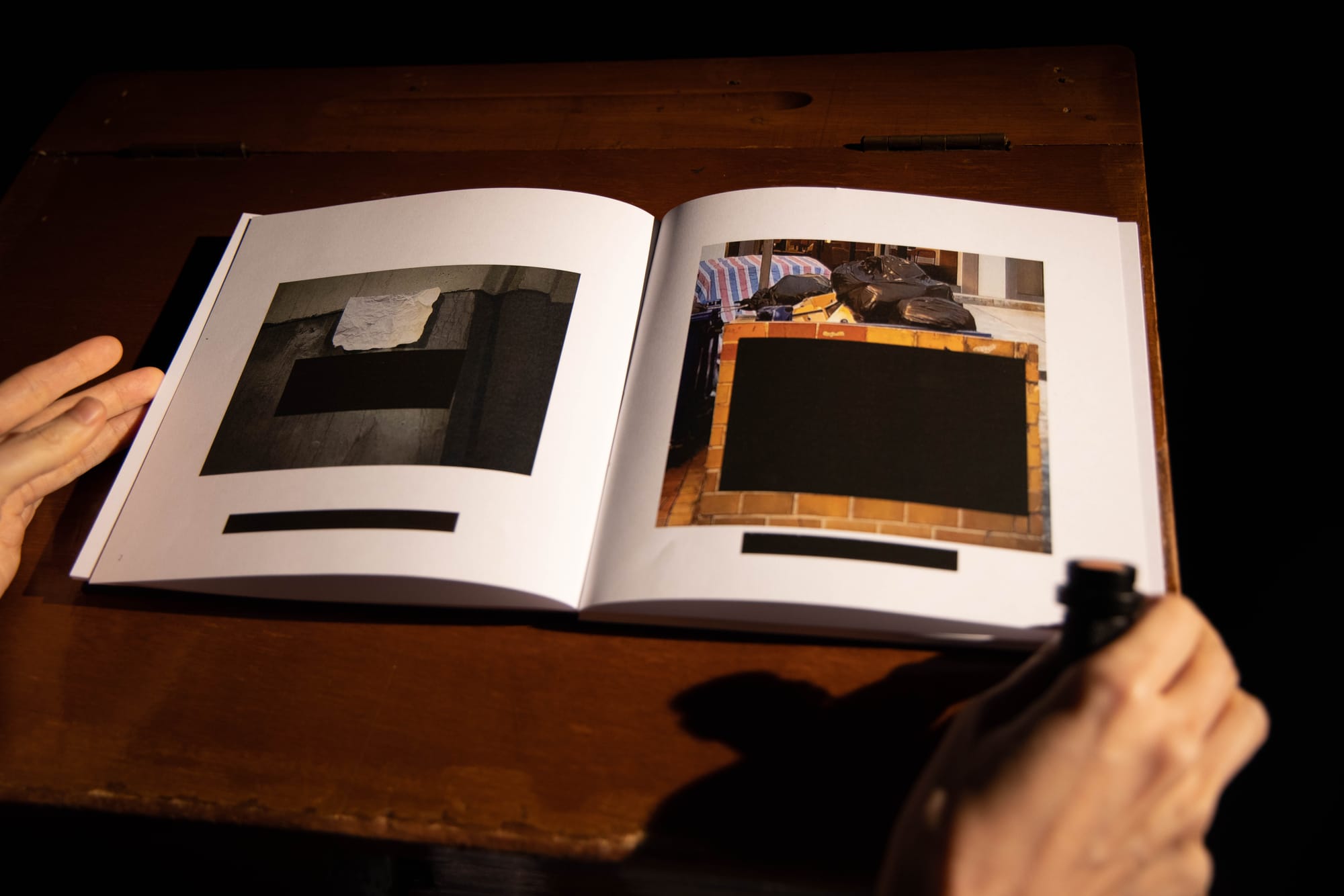 這種處理方式模仿了現實中政府以油漆遮蓋塗鴉的行為,此舉有意無意令被遮掩的痕跡更加顯眼。藝術家於照片上採用了特殊墨水作為「油漆」,觀眾需透過光學裝置才能閱讀得到背後隱藏的訊息。這個閱讀過程滿有儀式感,如「通靈」一般讓觀眾成為城市記憶的考古學家。