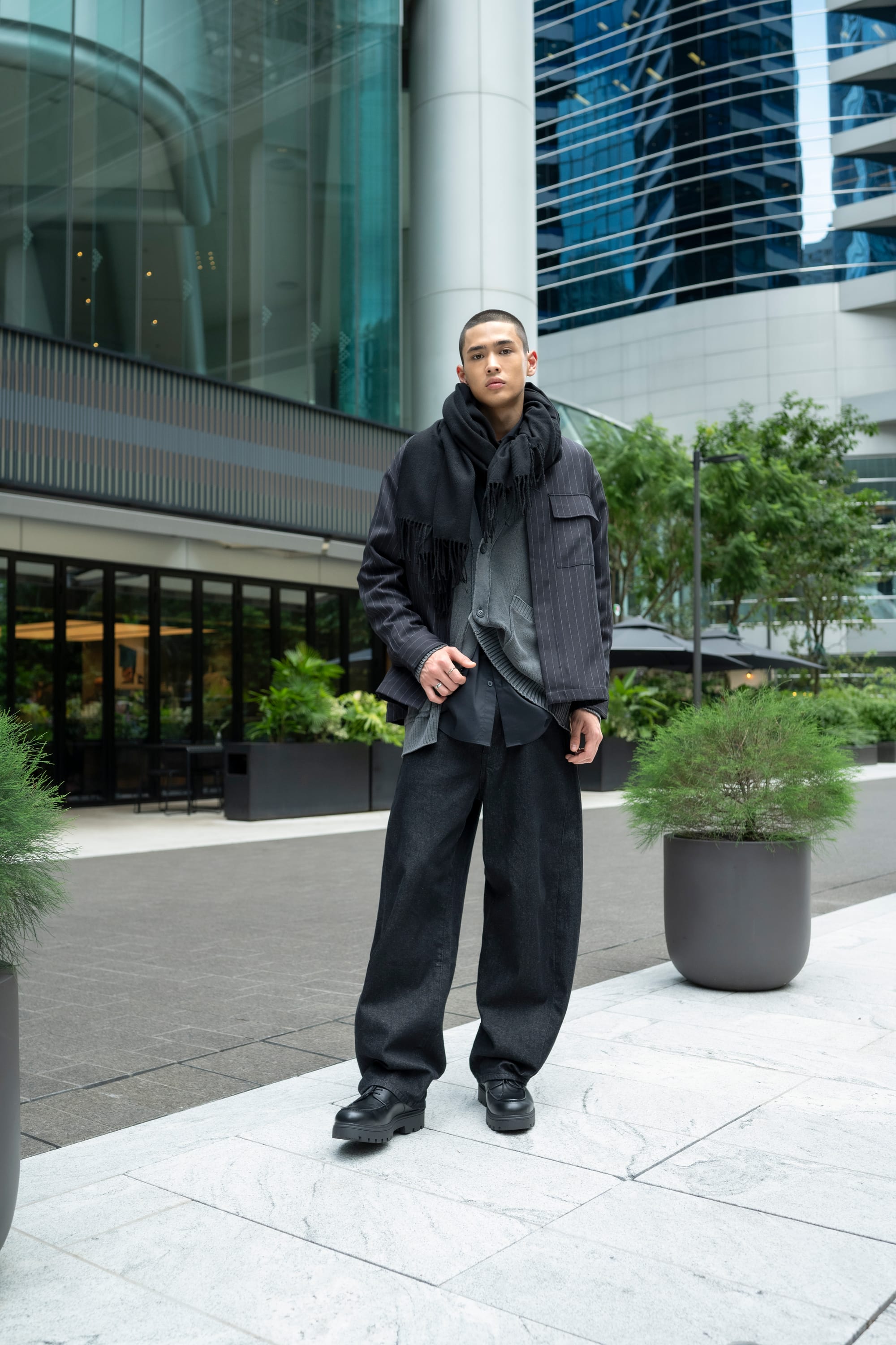 來到氣溫下降的冬日,黑色的Smart Casual造型世界通行,黑灰色的Barrel Leg Jeans只要作出心思配搭也可成為上班服的必然成員。