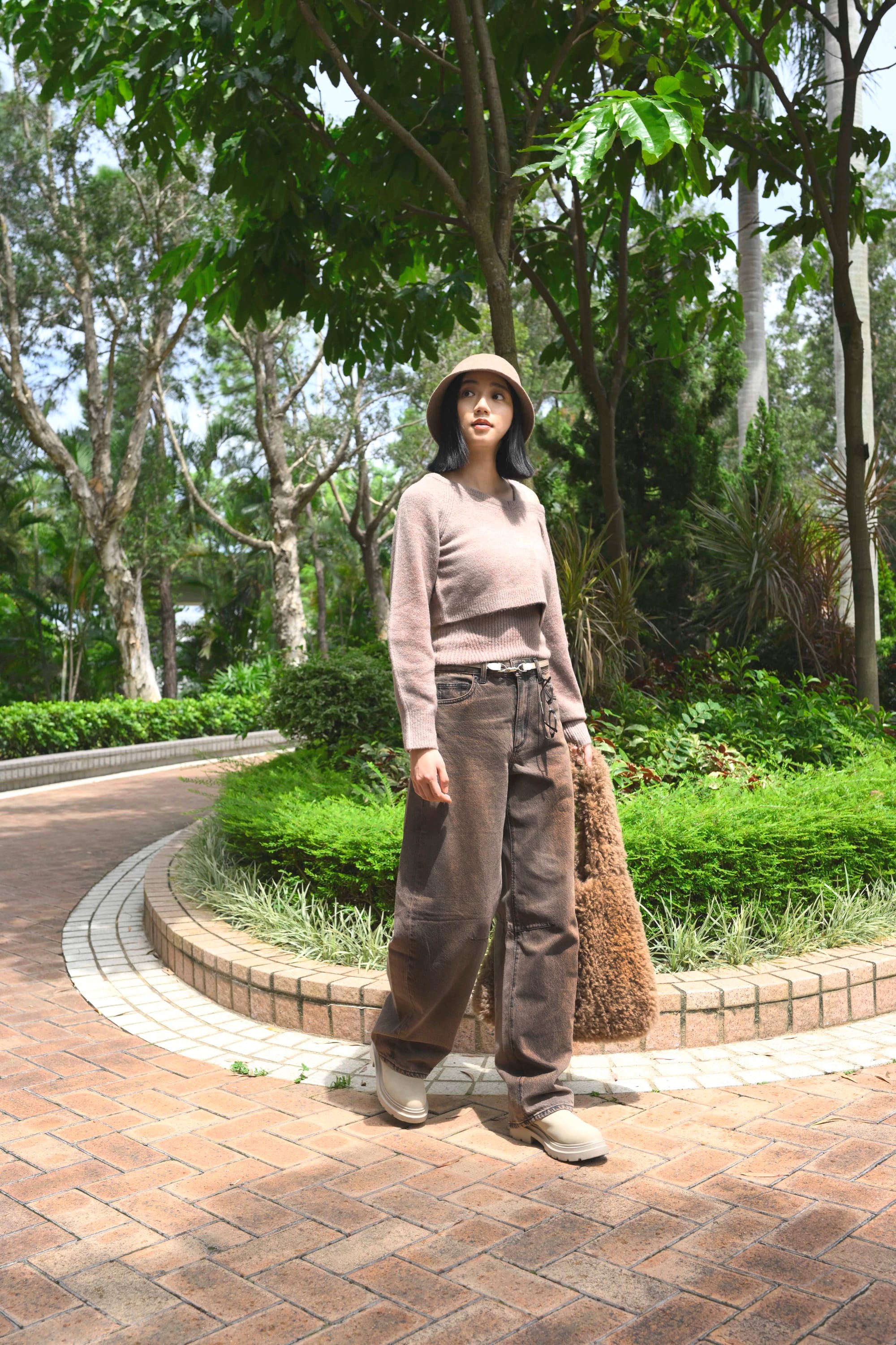 外出Chill & Relax,不妨穿搭復古棕、淺灰的Barrel Leg Jeans,配上與大自然相融的大地色系上衣甚至帽子,完整秋冬戶外造型。