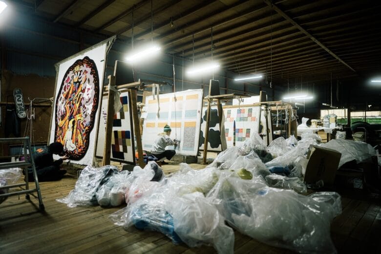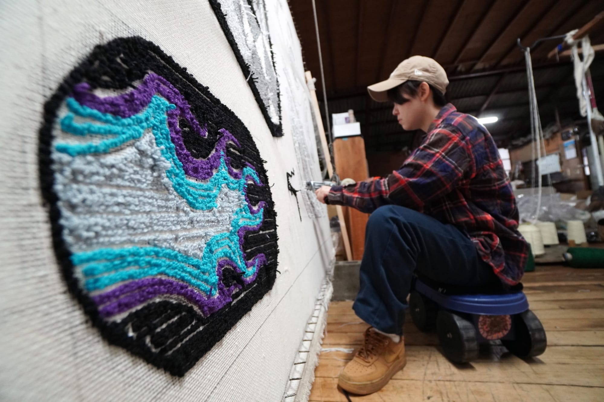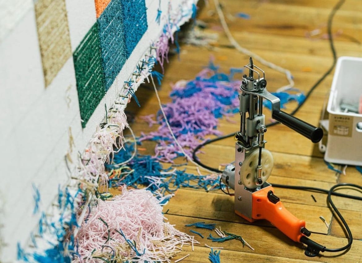 三好敷物仍然採用傳統簇絨(Tufting)技術製作地毯。市川先生接掌工廠之後,就開始透過SNS等社交媒體宣傳三好的工藝,竟吸引到不少年輕人前來拜師。目前約有10位職人在工廠工作,超過一半都是20多歲的年青世代。憑藉他們的創意,運用手上的簇絨槍改寫了三好敷物的命運。