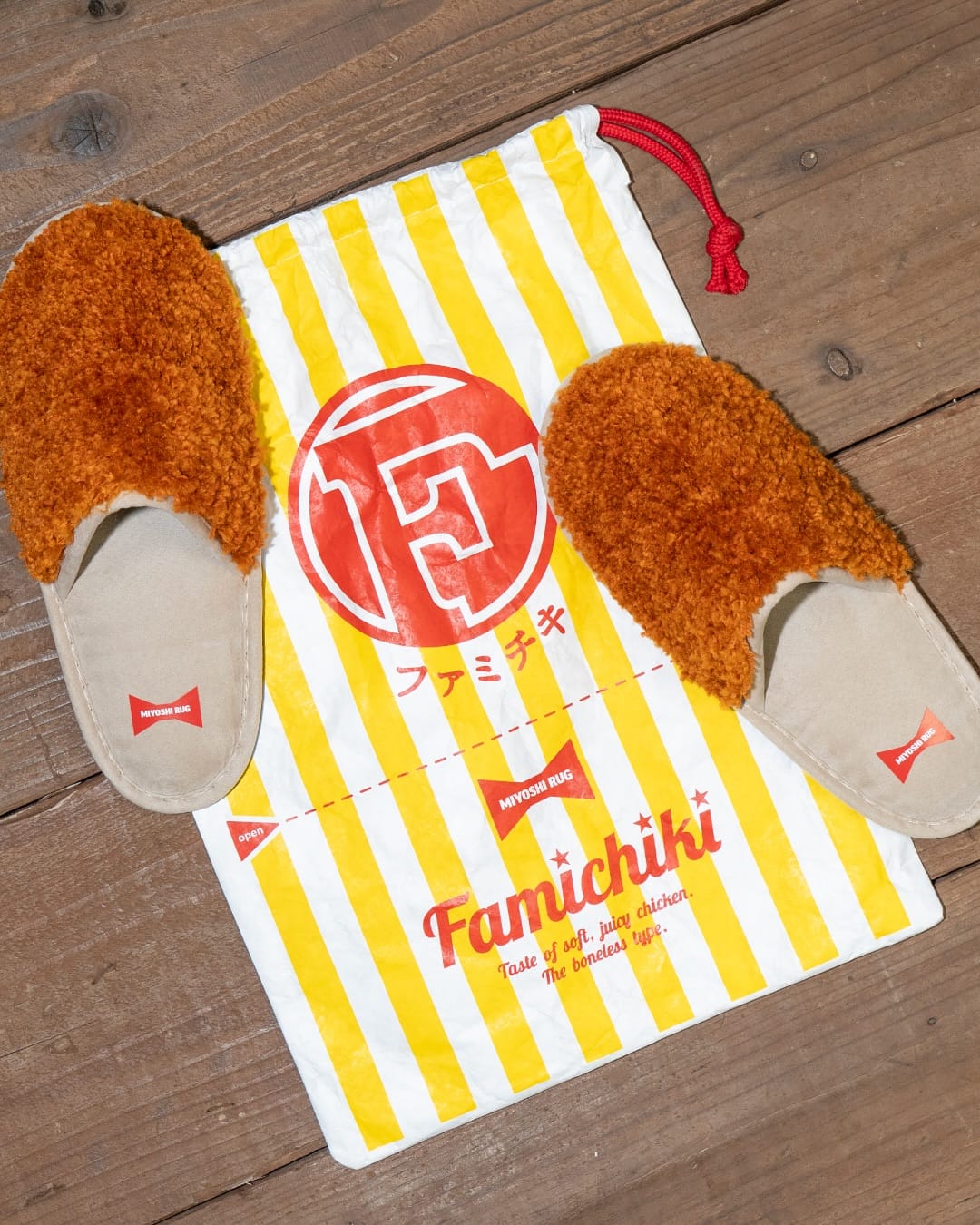 今年10月6日,日本FamilyMart推出了一款「睡拖」聯名單品,巧妙地運用了簇絨地毯技術製作名物「Famichiki」的炸雞脆皮,而幕後協助生產的,就是來自德島的三好敷物(MIYOSHI RUG),一家銳意改革求存、有超過50多年歷史的手工地毯工廠。