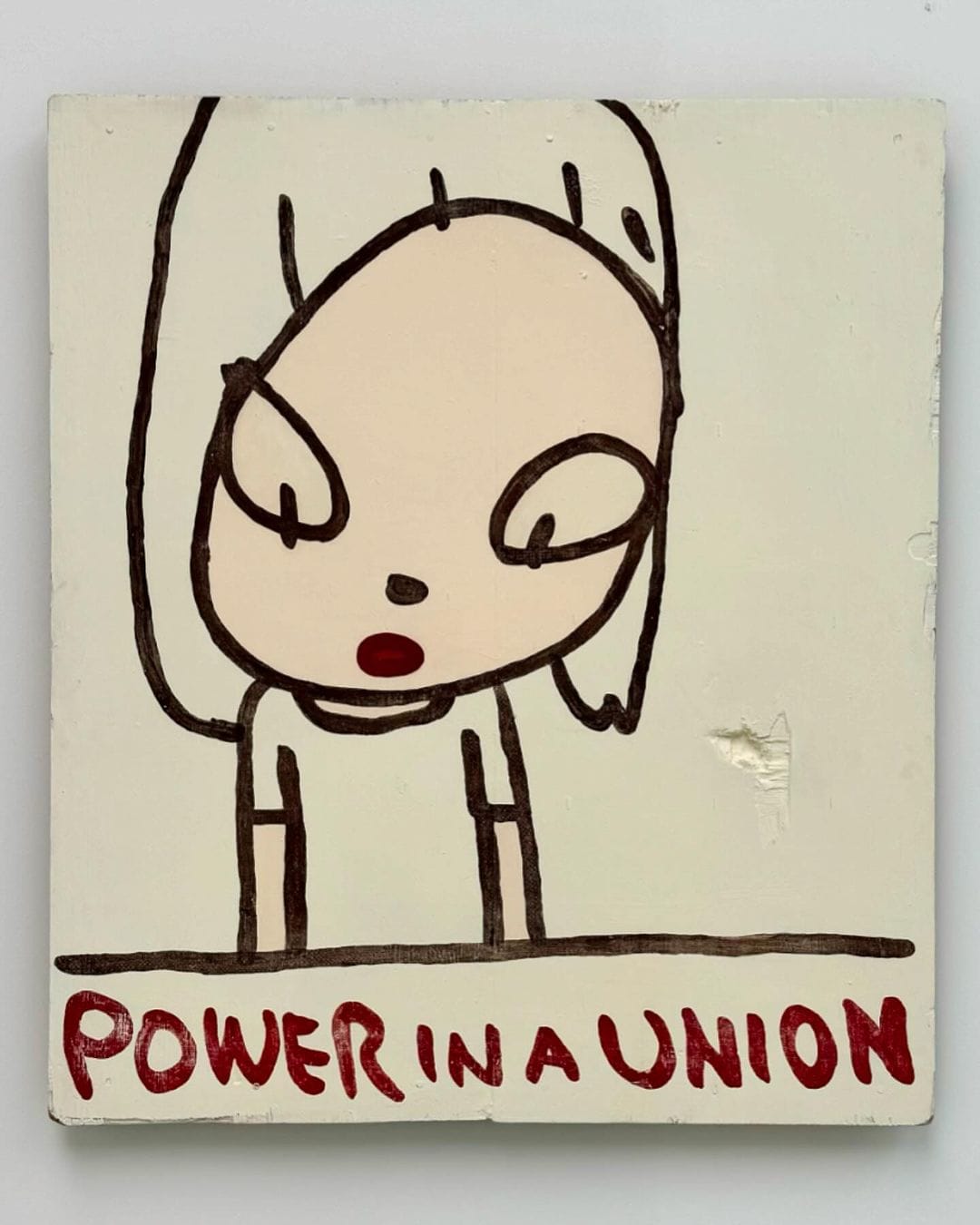 新作《Power in a Union》取材自英國歌手Billy Bragg的80年代歌曲〈There Is Power in a Union〉,歌詞鼓勵工人團結一致,作品某程度反映出奈良美智的社會良知與政治意識。自2011年福島核事故後,他在創作中越來越明顯表達自己的政治立場。