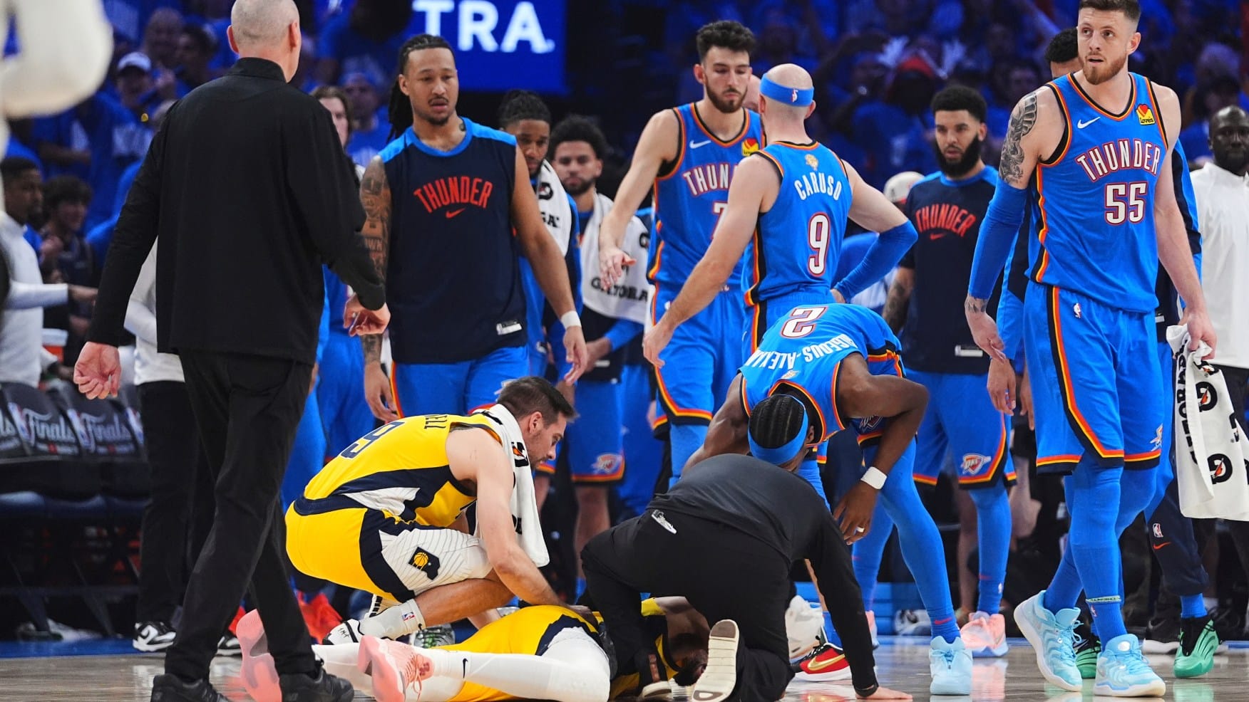 NBA總決賽睽違9年的「Game 7」,雷霆vs溜馬大家懐著興奮心情迎接SGA對戰Haliburton。哈利仔雖然帶傷上陣,但早段仍攻入三球漂亮「3分波」,怎知離第一節完場還剩4:55,竟在無碰撞之下跌到地上。大家見哈利仔絕望的哭叫,已心知不妙⋯⋯結果,他真的是「Right Achilles Tendon」,近年看NBA不會陌生的名詞:(右)阿基里斯腱撕裂。