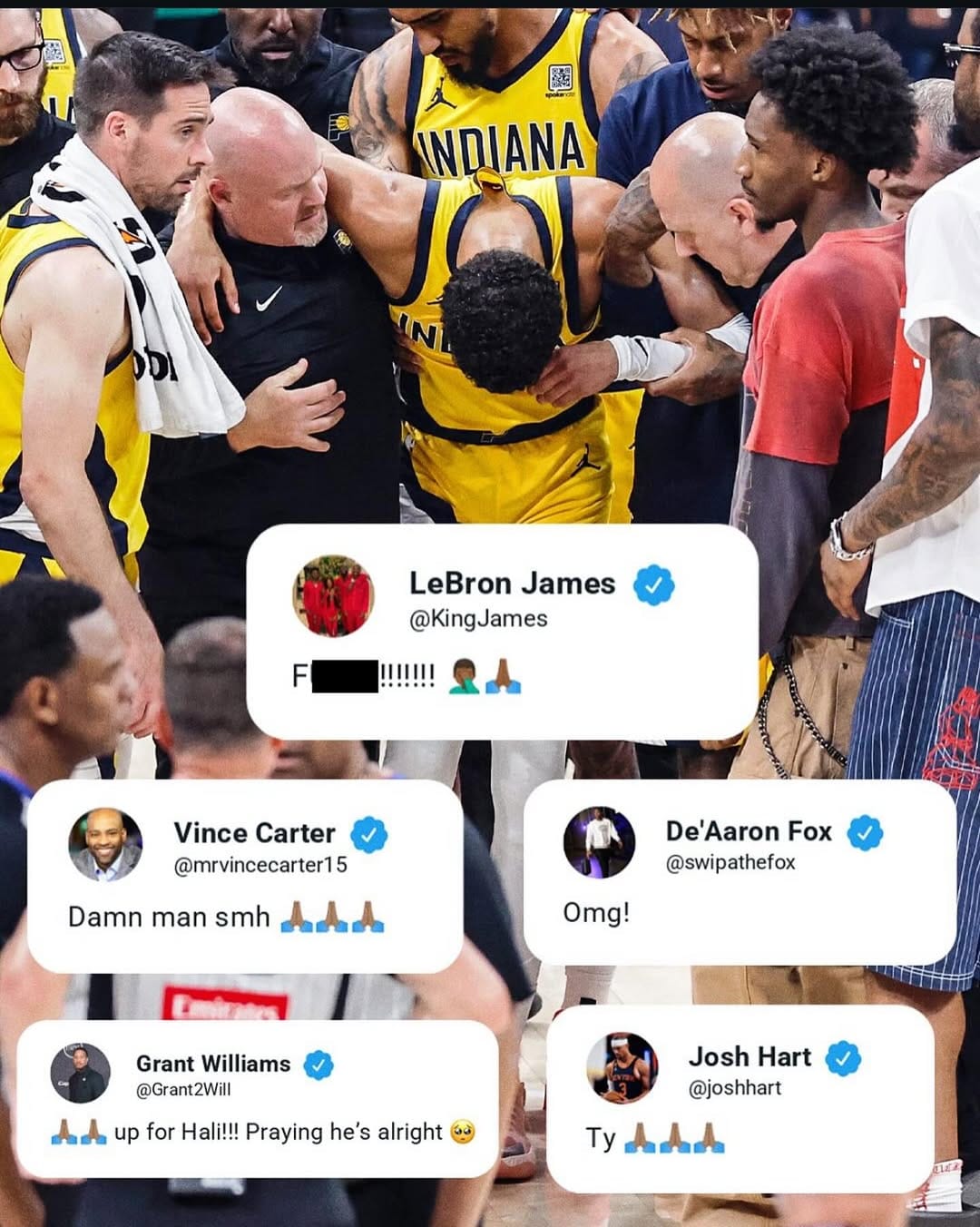 哈利仔 : 「除了震驚,不知道如何解釋。言語無法表達這種失望的痛苦,挫敗感是難以想像的。我辛苦了一輩子才到達這一刻,結果就這樣結束了嗎?現在我已經接受了手術,我希望我能數出人們告訴我「變得更堅強」的次數。我的腳感覺就像死了一樣,但最受傷的是我的心靈。感覺我在胡言亂語,但我知道當我經歷這一切時,我會回顧這件事,因為我為自己奮鬥過的事情感到自豪。 我很感激每一次引導我來到這裡的經歷,我感謝籃球世界的所有愛,給我一些時間,我會拭去身上的灰塵,然後立即恢復成為最好的Haliburton。