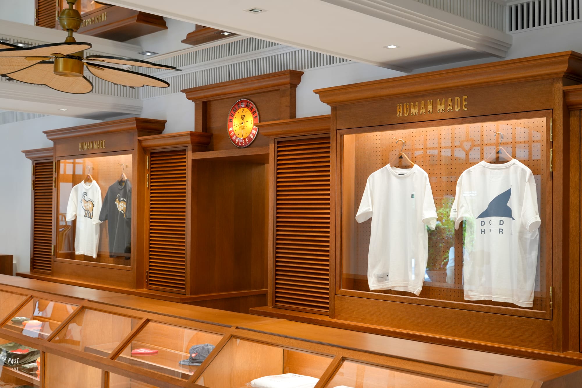 HUMAN MADE REPULSE BAY店舖面積比原宿OFFLINE STORE還要大,內裝風格跟日本、以至其他地區的HUMAN MADE店不一樣。這是NIGO®老拍檔片山正通之Wonderwall建築事務所、首次負責室內設計之門店,亦是全球獨家以這個組合出發之HUMAN MADE。