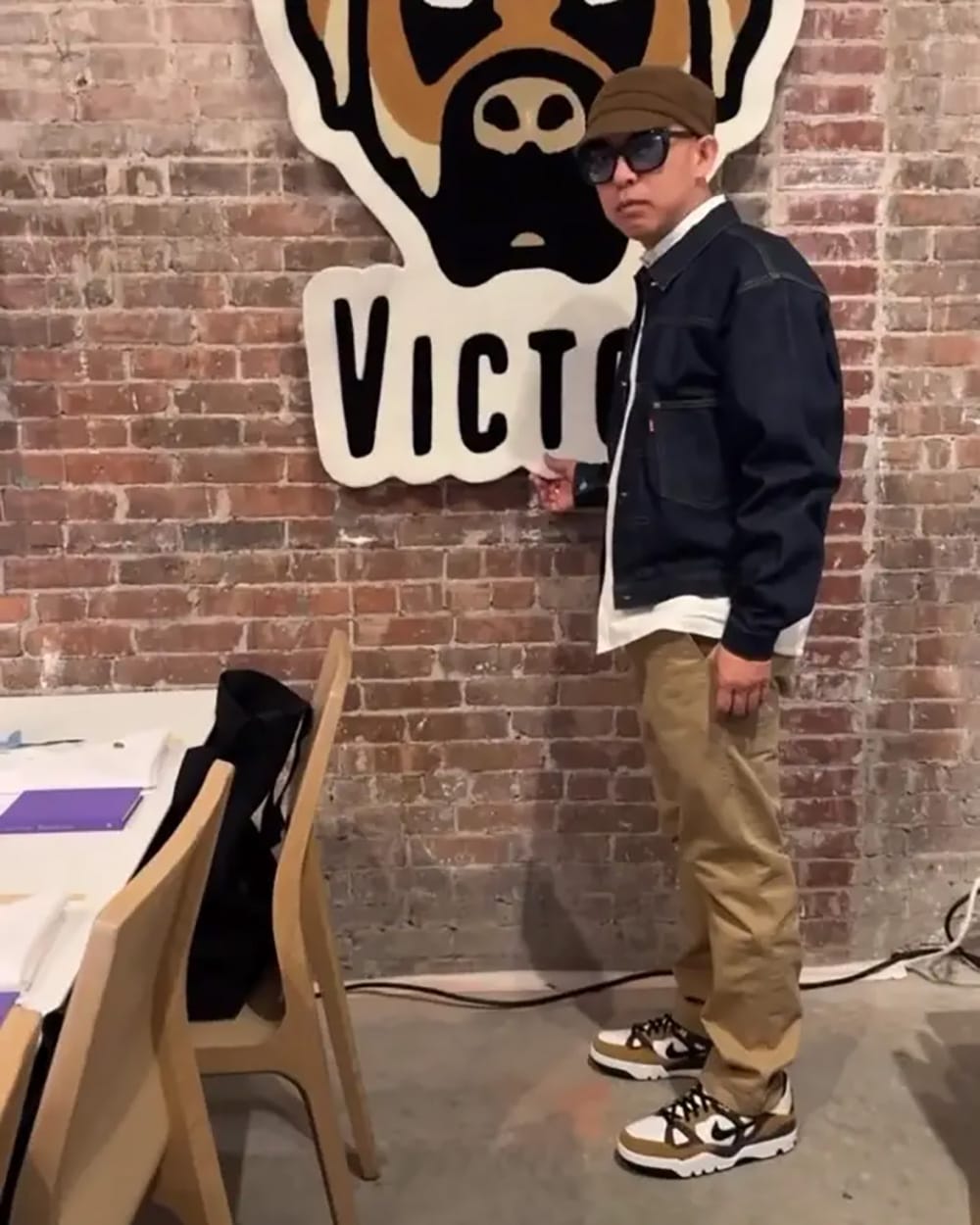 該次NIGO美國之行,還有 #HumanMade 紐約期間限定店,NIGO特別與美國音樂廠牌 #VictorVictorWorldwide 合作,攜手帶來多款聯名商品。由 #StevenVictor 創辦的Victor Victor Worldwide,其土佐鬥犬(Tosa)廠牌標誌早在2022年就邀請了NIGO協力設計,象徵著勇氣和智慧,Victor Victor Worldwide標誌的用色跟NIGO腳下那對Air Force 3 Low「Escape」十分相似。