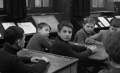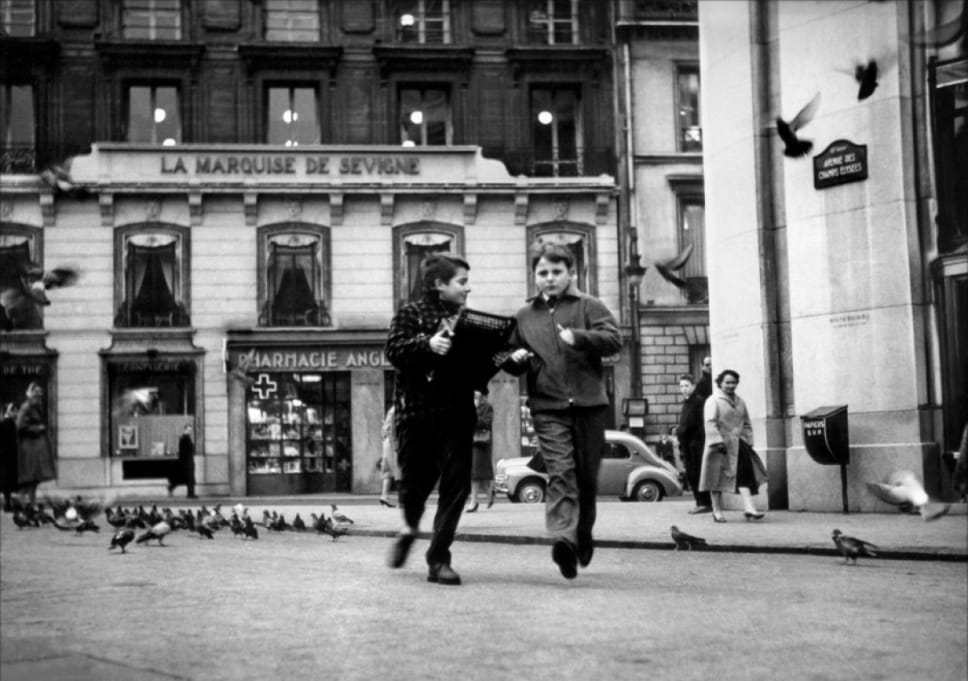 (左)小男生主角在巴黎街頭拿着他偷來的打字機;(右)飾演《四百擊》男主角的Jean-Pierre Léaud及後一直成為一眾法國部浪潮導演的愛將