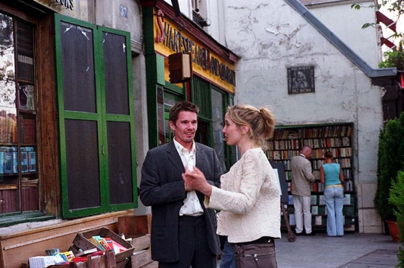 當然,電影是夢幻製造廠,但能夠讓一齣絕不高潮迭起,只簡單聚焦一段日落前的二人街頭漫游對話,便能登上不少影迷的十大經典愛情電影,開場那間彷彿把時間凝固了的小書店—莎士比亞書店,絕對功不可沒。一間能把「夢幻」二字烘托起來的書店,只因為她在現實裡比「夢幻」更夢幻。