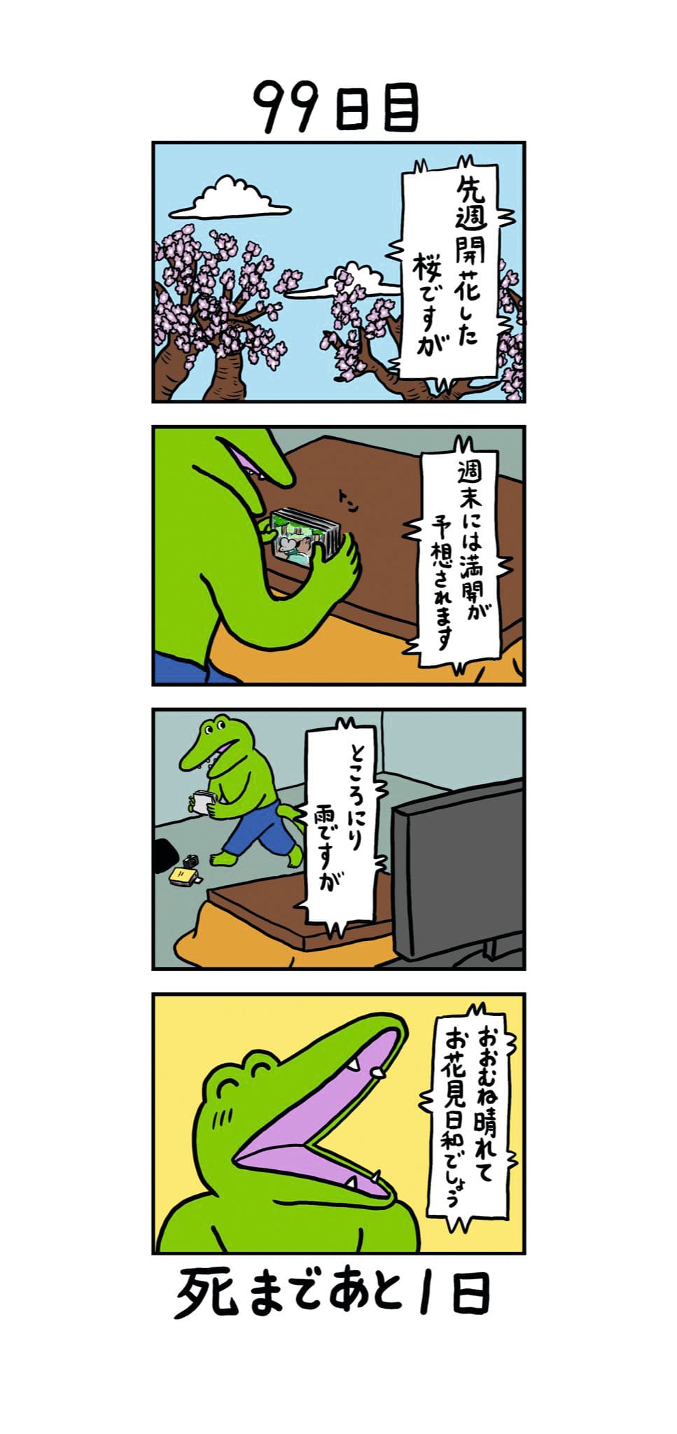 四格漫畫到今天仍然可以引起極大迴響,好似去年由KIKUCHI YUUKI創作的《100天後就會死的鱷魚》(100日後に死ぬワニ),便在網絡觸發追看潮!漫畫以每日一則的形式在TWITTER連載,主角是一隻過著平凡生活的鱷魚,作者明言牠將在一百天後死亡,生命不斷倒數的設定不但令讀者對故事往後發展感到好奇,甚至因為每日關注而漸漸對牠產生不捨之情。