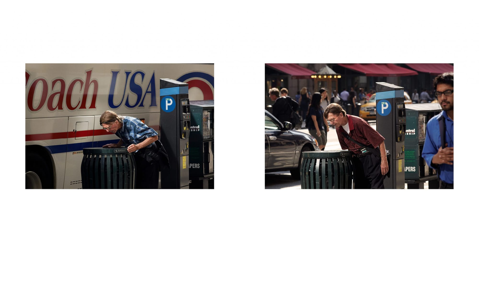 攝影界一度流行街拍,有日本雜誌近年更重拍20年前的街頭素人。相較之下,丹麥攝影師Peter Funch的《42nd and Vanderbilt》則近乎執念——不是回顧,而是持續觀察。從2007到2016年,每個工作天他也守候在同一個街角,以半長焦鏡頭拍下從Grand Central Station湧出的上班族。他辨認出當中的「常客」:有人每天喝杯冰咖啡,有人每天在同一垃圾桶旁徘徊。重複的日常,流露淡淡的詩意。