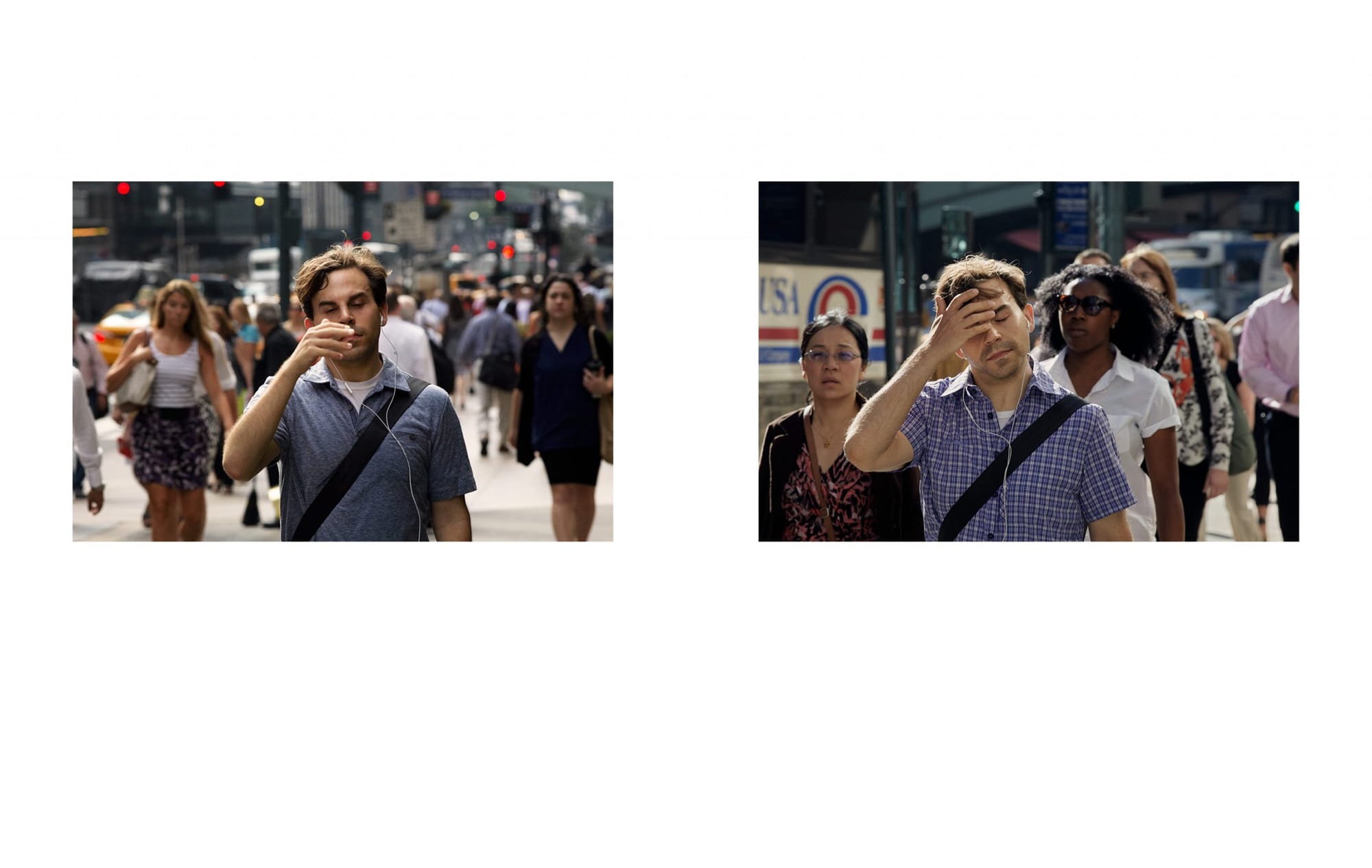在這個考驗耐性的實錄之前,Peter Funch早在2006年經已開始街頭觀察企劃《Babel Tales》。他拍攝了城市裡無數個瞬間,再把不同時間的路人拼合成一個不曾存在的「場景」。近10個人在同一條街上同時打呵欠、合上眼甚或拿著氣球。這種群像幻想,展現出他對時間與群體行為的敏銳觀察。