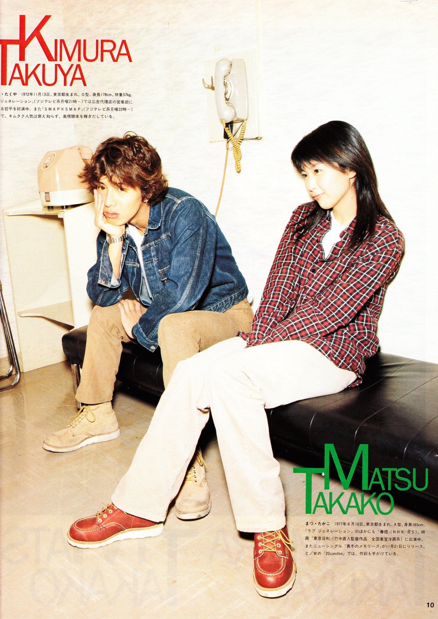 穿搭以美國西岸造型為主,牛仔褲加Red Wing的組合經常在人氣劇集出現,《悠長假期》片頭、《Hero》、《戀愛世紀》等,木村成為亞洲男士爭相模仿對像。