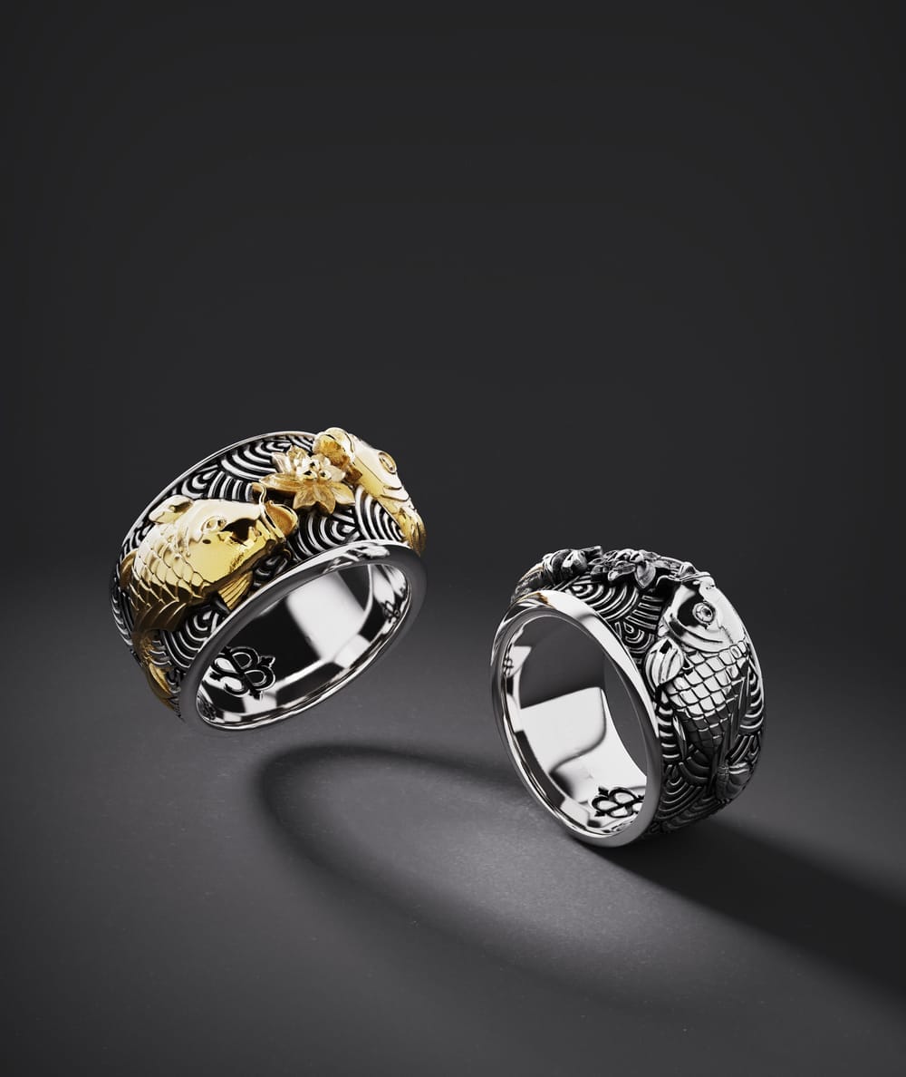 左起:Kanagawa 純銀戒指 $2,388 / Koi 錦鯉純銀戒指 $3,088