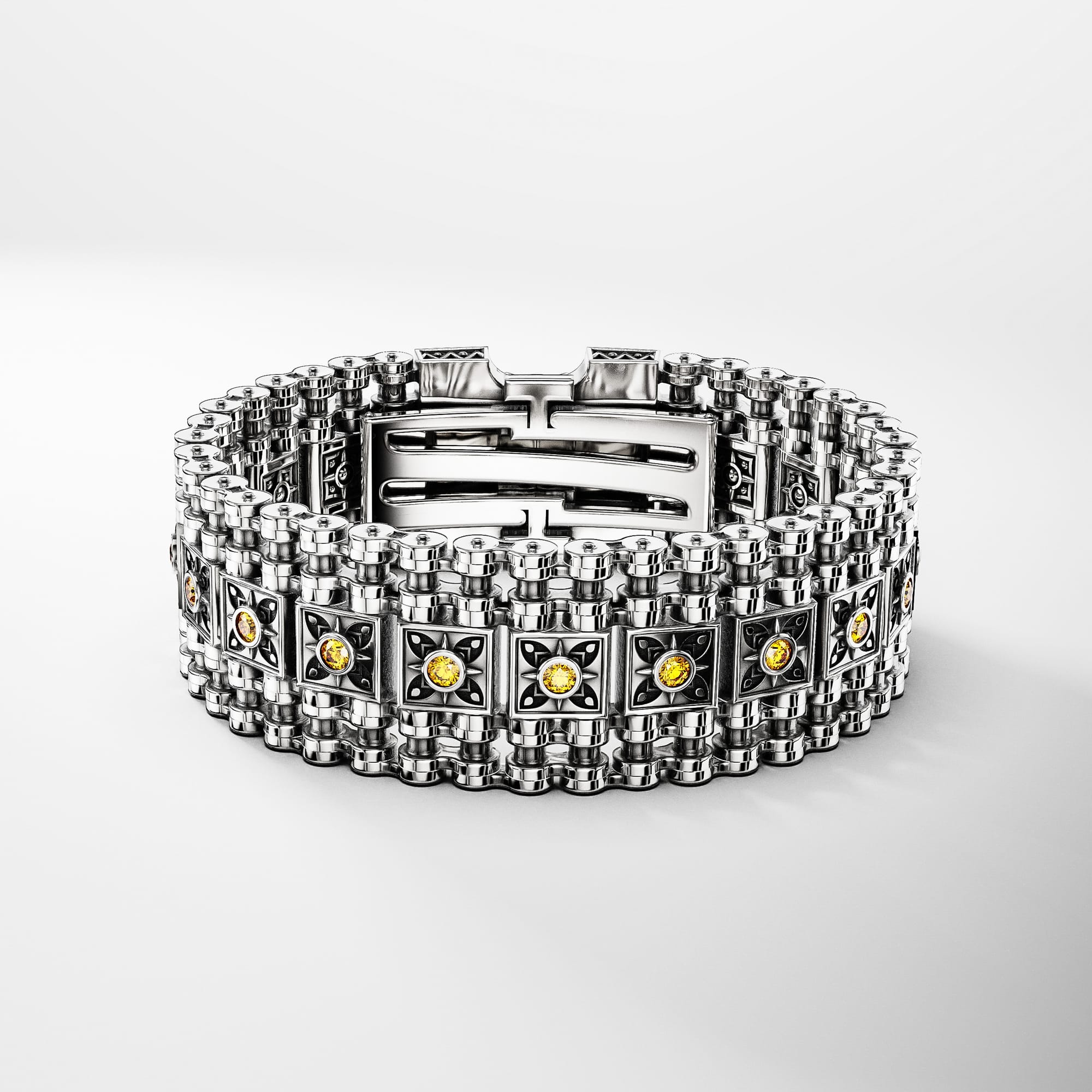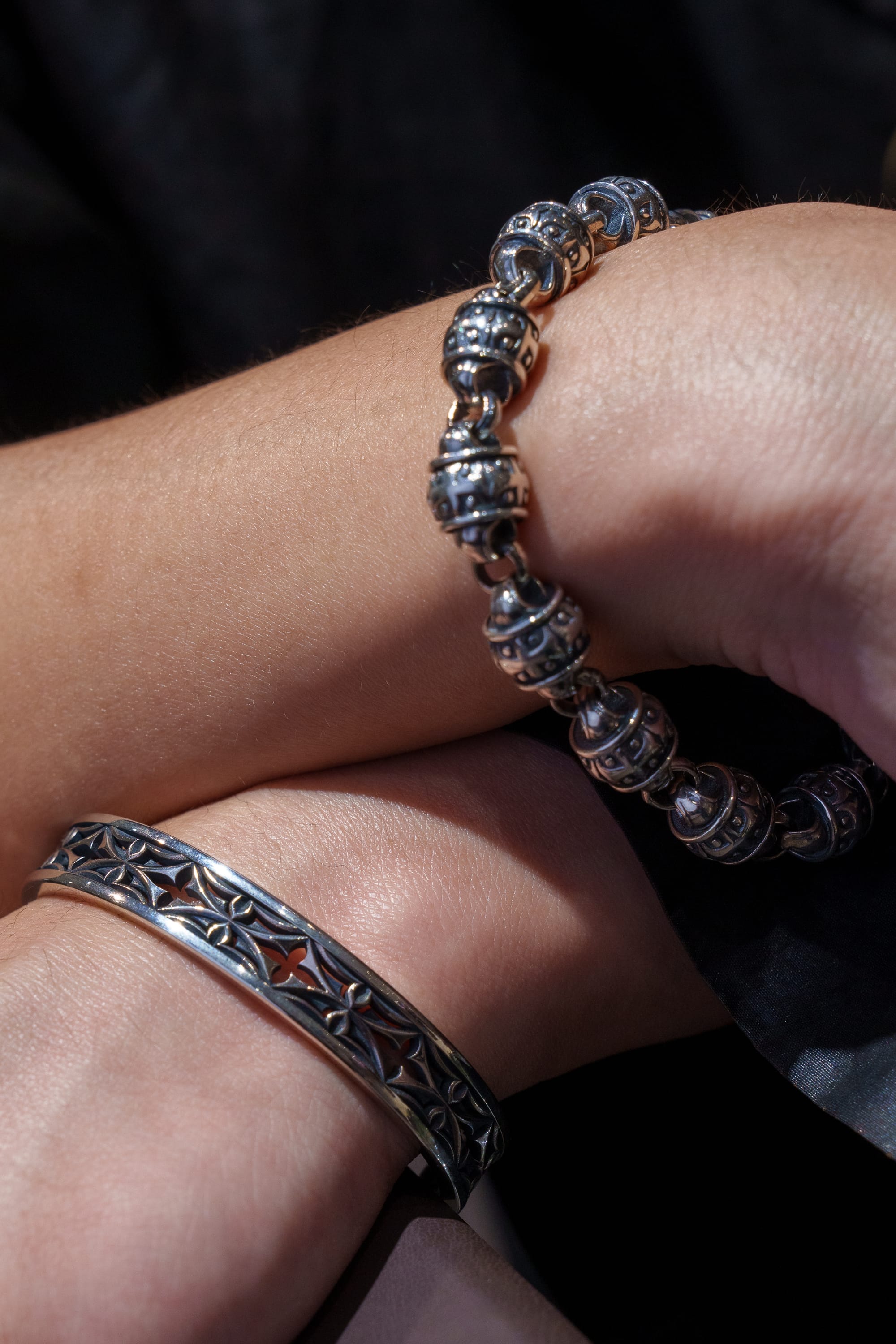 手工銀器品牌賣點顧名思義在於「手工」!Saint Bones的銀器飾物由太陽眼鏡、腕錶以至戒指等配飾,都強調工匠人手製作的手藝與溫度。設計秉承歐洲品牌瑰麗風格,同時結合日本大和傳統特色,如純銀戒子系列精緻的錦鯉雕刻、象徵平安的「青海波」浪紋圖案,突出和洋折衷的設計理念。鑲嵌印度藍寶石之手鍊,則以機車鏈條為概念,就連知名MMA格鬥選手Samuel Ericsson都是「聖骨」的忠實擁躉。